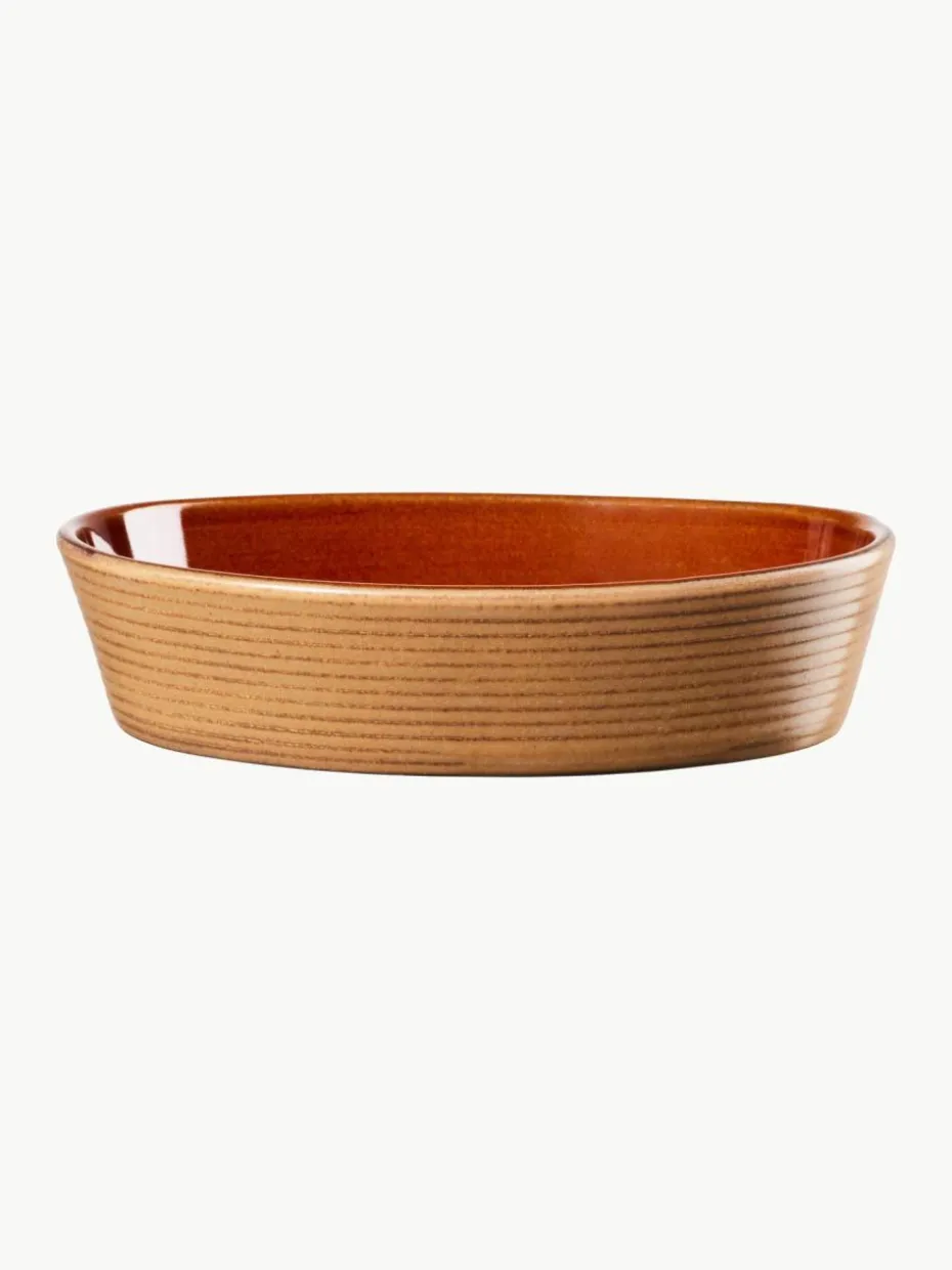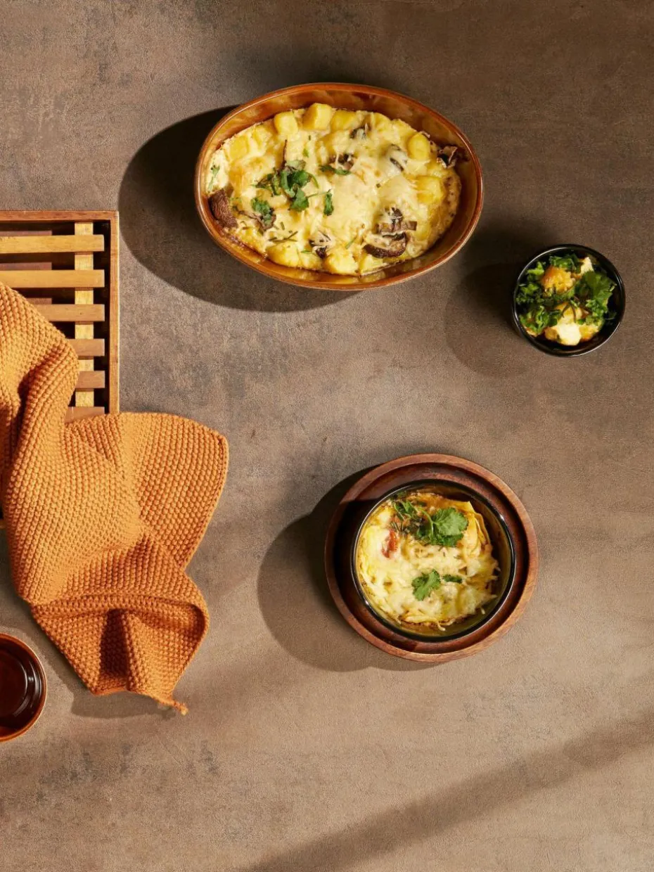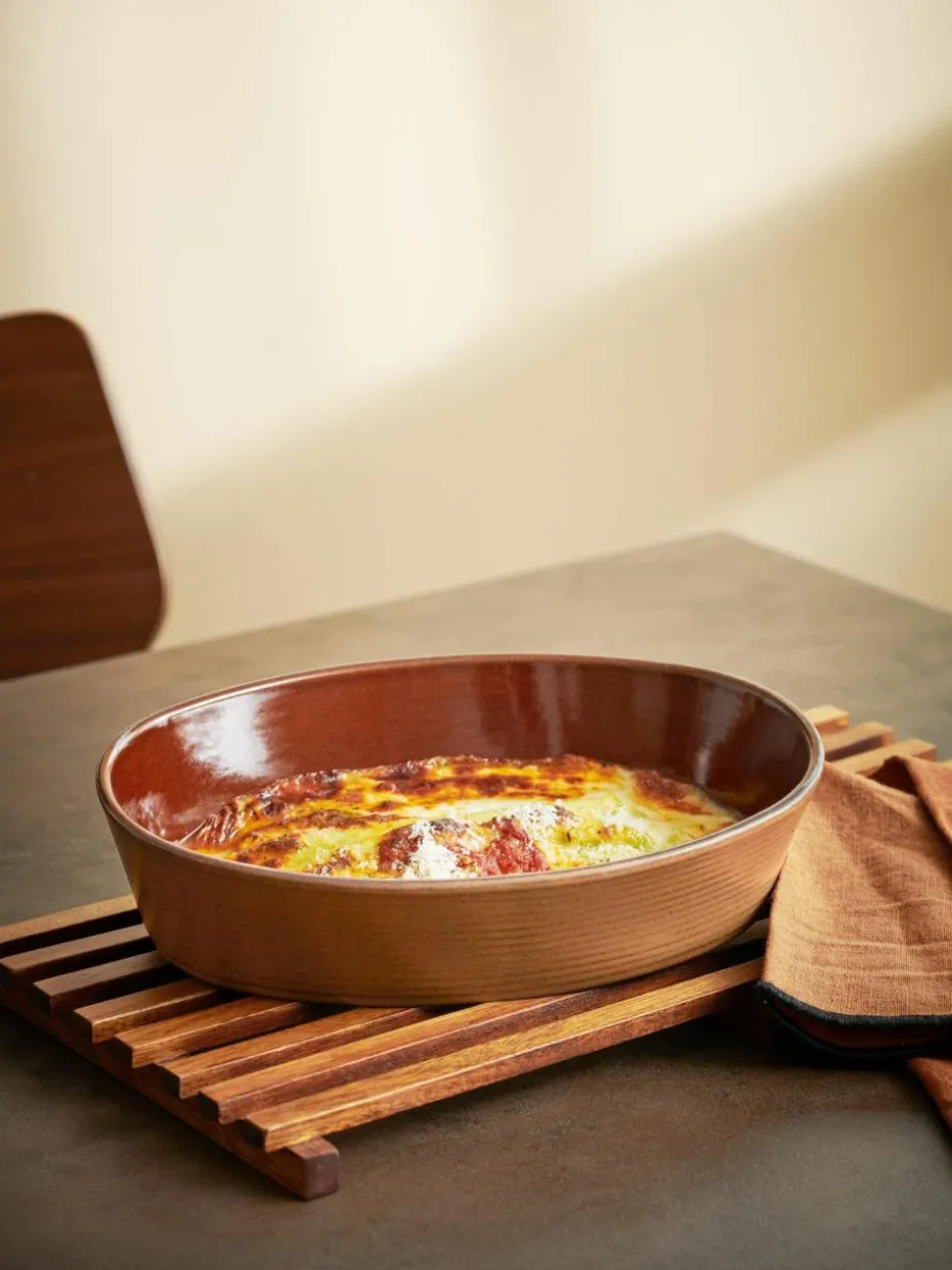 Die Serie MINIU bietet eine Auswahl an runden und ovalen Ofenformen, die Qualität und Design miteinander verbinden. Dank der Effektglasur, die bei jedem Brand anders reagiert, hat jede Ofenform einen individuellen Charakter. Dies macht sie perfekt zum Anrichten von z. B. Gratins, Beilagen oder Soufflés auf dem Esstisch. Das glänzende Finish im Innenbereich erleichtert die Reinigung.