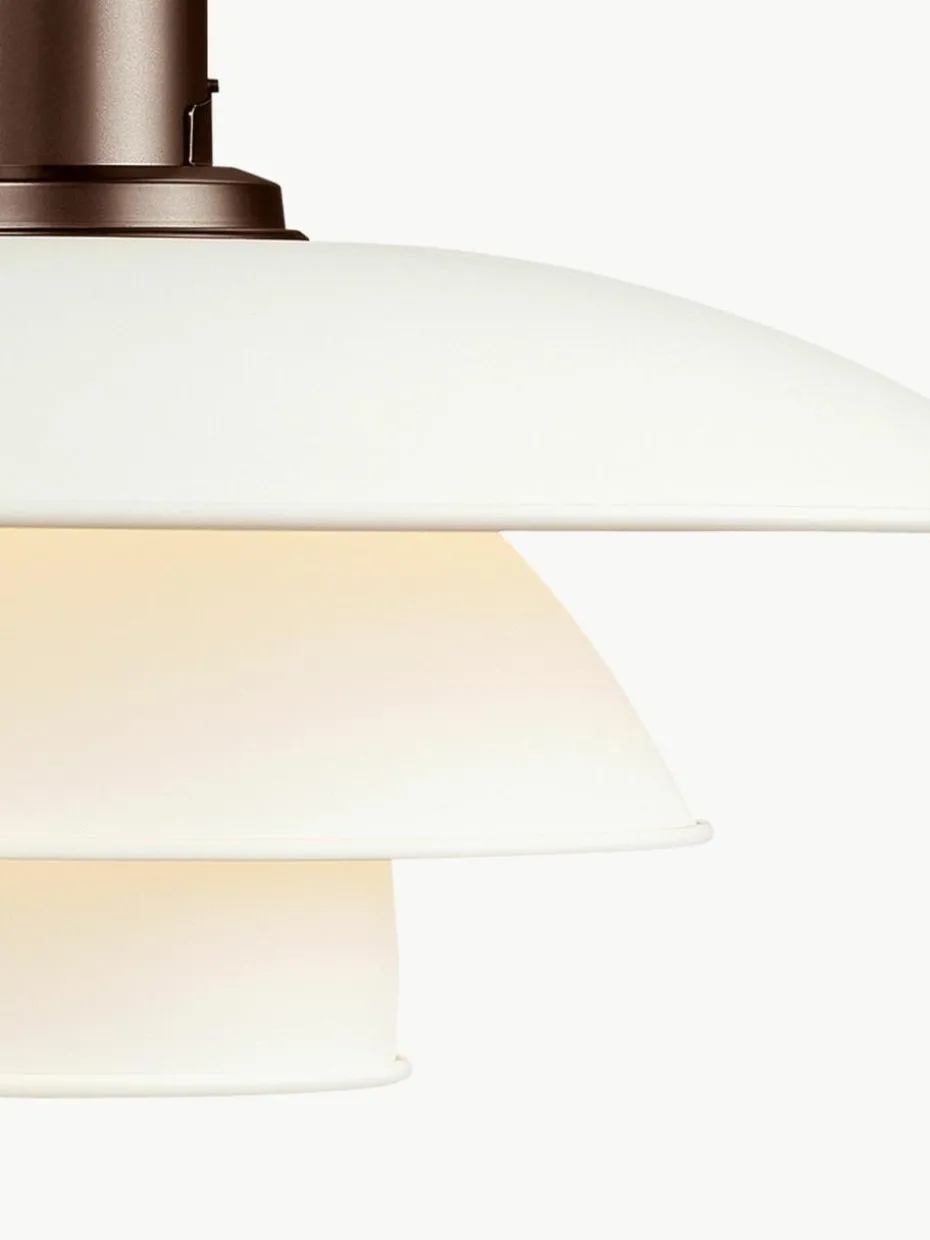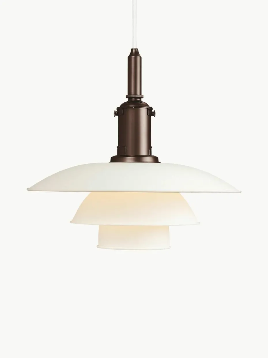 Diese Pendelleuchte strahlt ein weiches, harmonisches und angenehmes Licht ab, das hauptsächlich nach unten gerichtet ist. Als Grundlage für diese Leuchte verwendete Poul Henningsen sein bekanntes Dreischirmsystem. Entworfen hatte er dieses System 1925 mit dem Ziel, ansprechendem, blendfreiem Licht eine Form zu verleihen. Die erste Leuchte, die dieses Dreischirmsystem nutzte, wurde in Zusammenarbeit mit Louis Poulsen entwickelt.