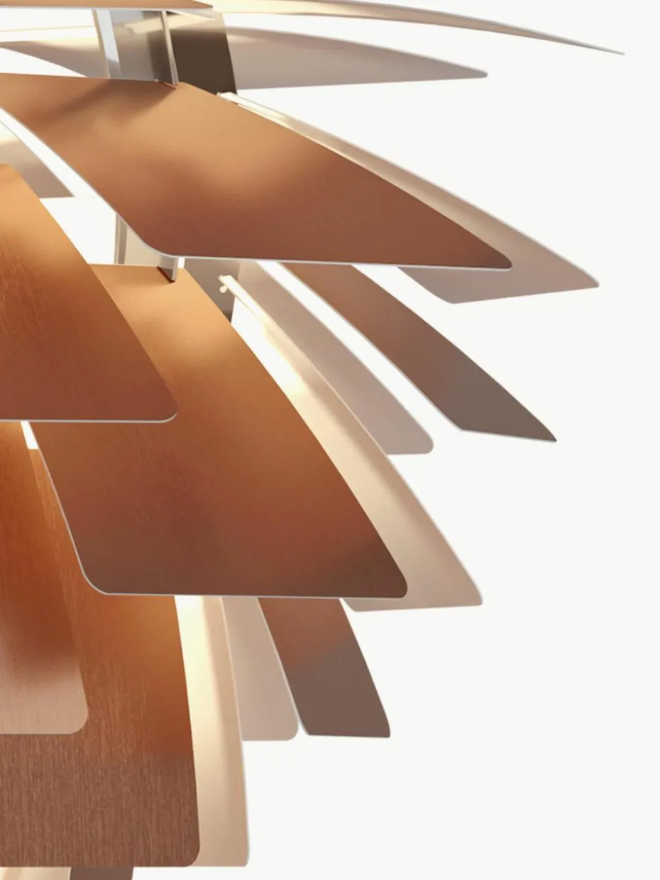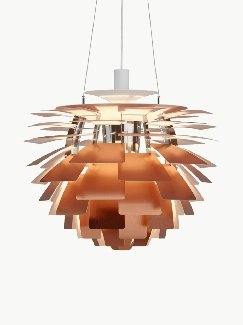 Die Blätter sorgen für eine makellose, blendfreie Lichtabstrahlung – ganz gleich, aus welchem Winkel diese bemerkenswerte Leuchte betrachtet wird. Der Name der Leuchte verweist auf ihr charakteristisches Design, das das Licht auf angenehme Weise sowohl nach innen als auch nach außen strahlt. Nachdem Poul Henningsen 1958 gebeten wurde, eine Pendelleuchte für das hochmoderne Kopenhagener Restaurant Langelinie Pavillonen zu gestalten, benötigte er lediglich drei Monate für die Entwicklung der Lampe. PH Artichoke gilt als echte Design-Ikone.