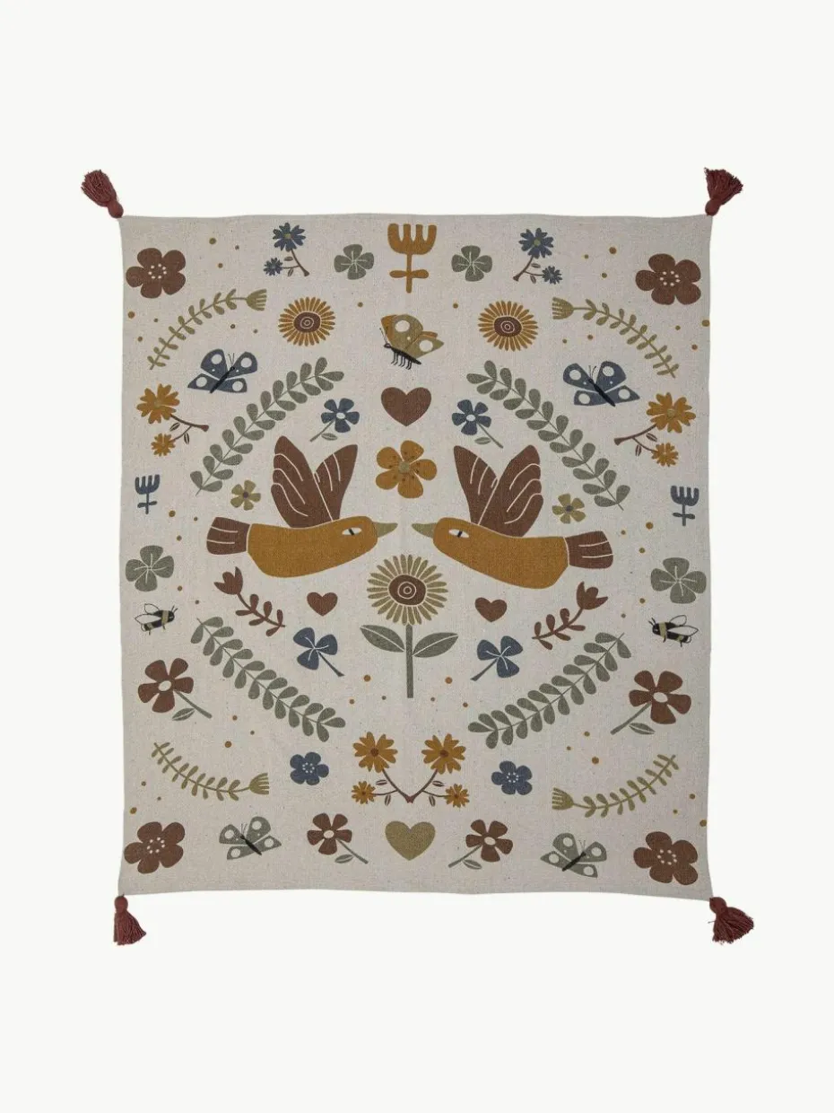 Der BRYN Plaid hat einen süßen Blumendruck, der ihr einen warmen und gemütlichen Look verleiht. Die Decke hat charmante Quasten. Sie kann überall verwendet werden – im Kinderwagen, im Wohnzimmer oder im Kinderzimmer.“,“pdp_care_label“:“Maschinenwäsche bei 40° C