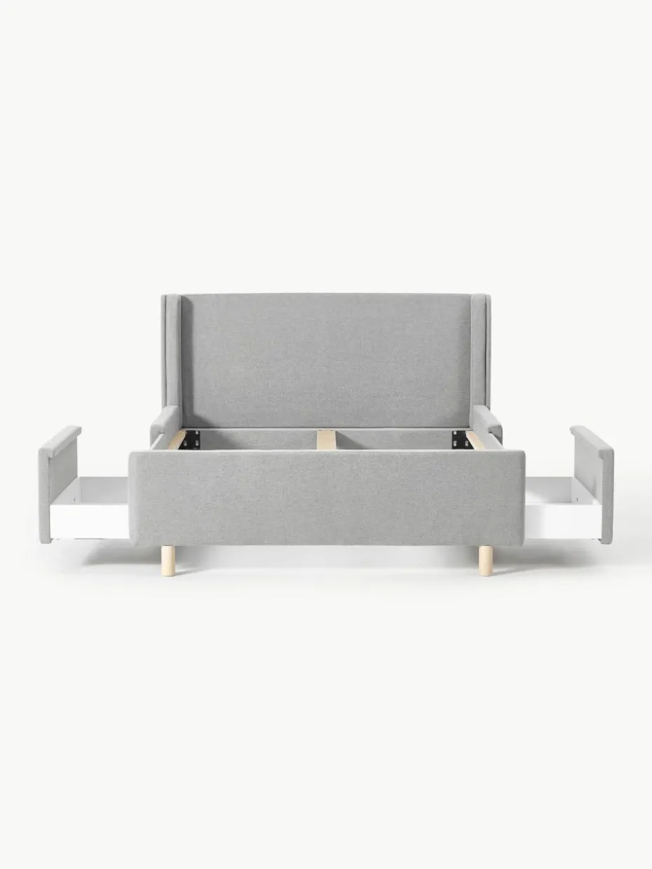 Traumhaft schlafen und gleichzeitig Platz sparen? Nichts leichter als das – mit unserem Polsterbett ARCHE. In den herausziehbaren Schubladen verbirgt sich jede Menge Stauraum für Bettwäsche, Laken und mehr. Das gepolsterte, nach innen abgerundete Kopfteil ist perfekt zum Anlehnen und macht ARCHE auch optisch zu einem echten Highlight!
