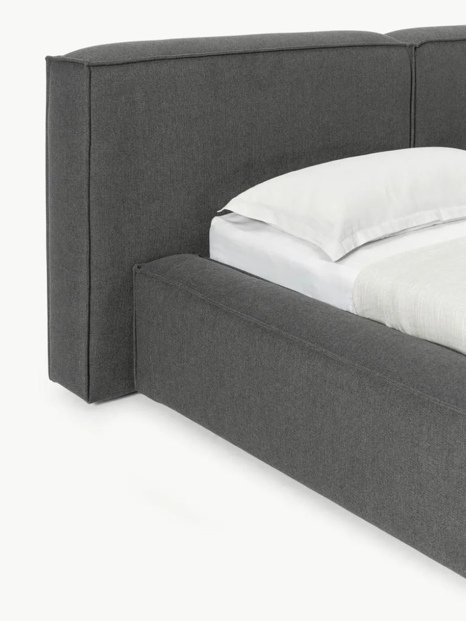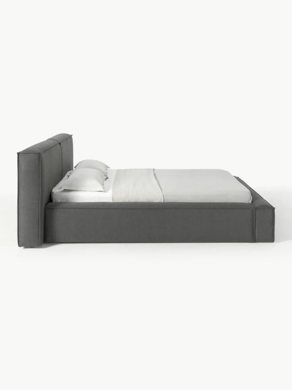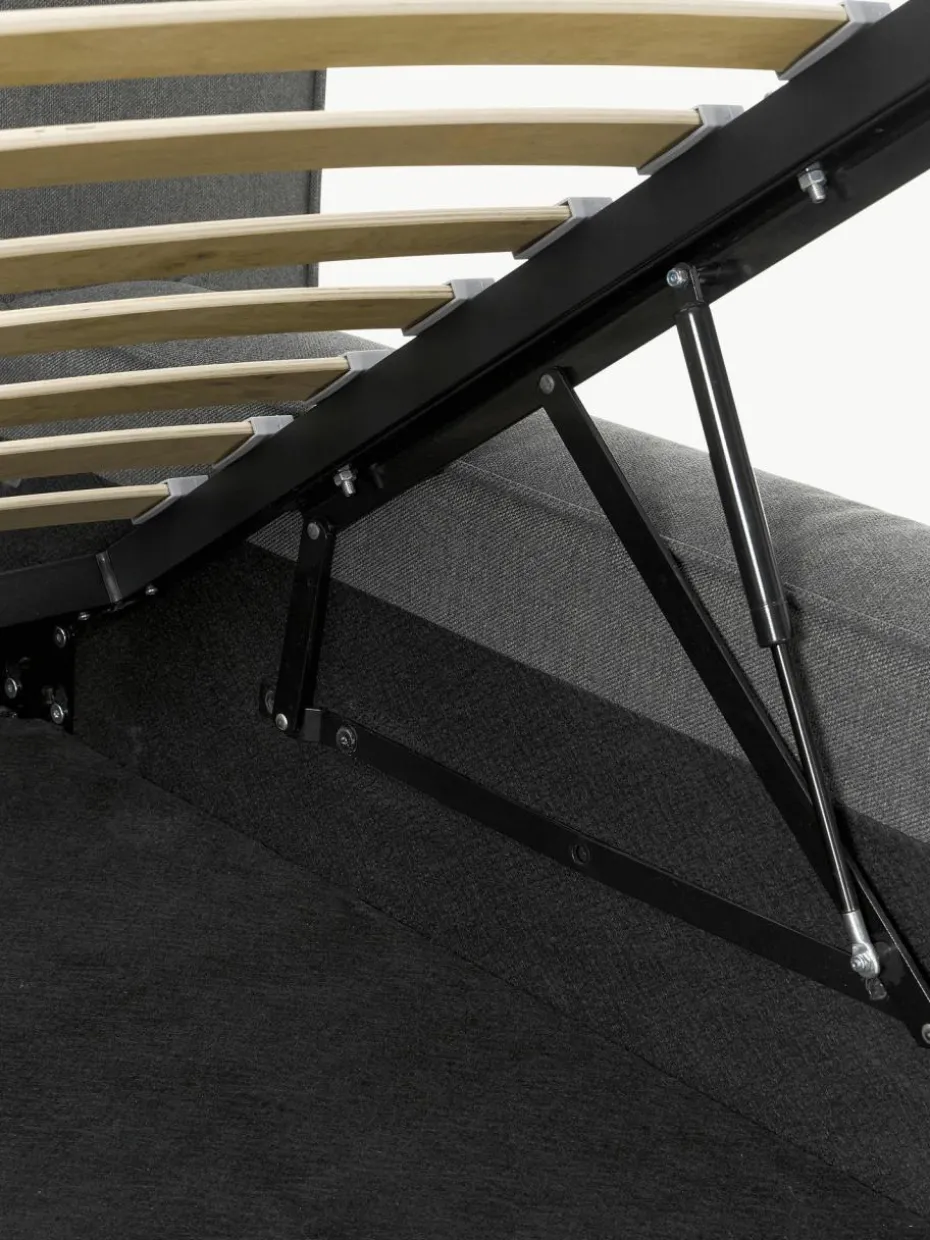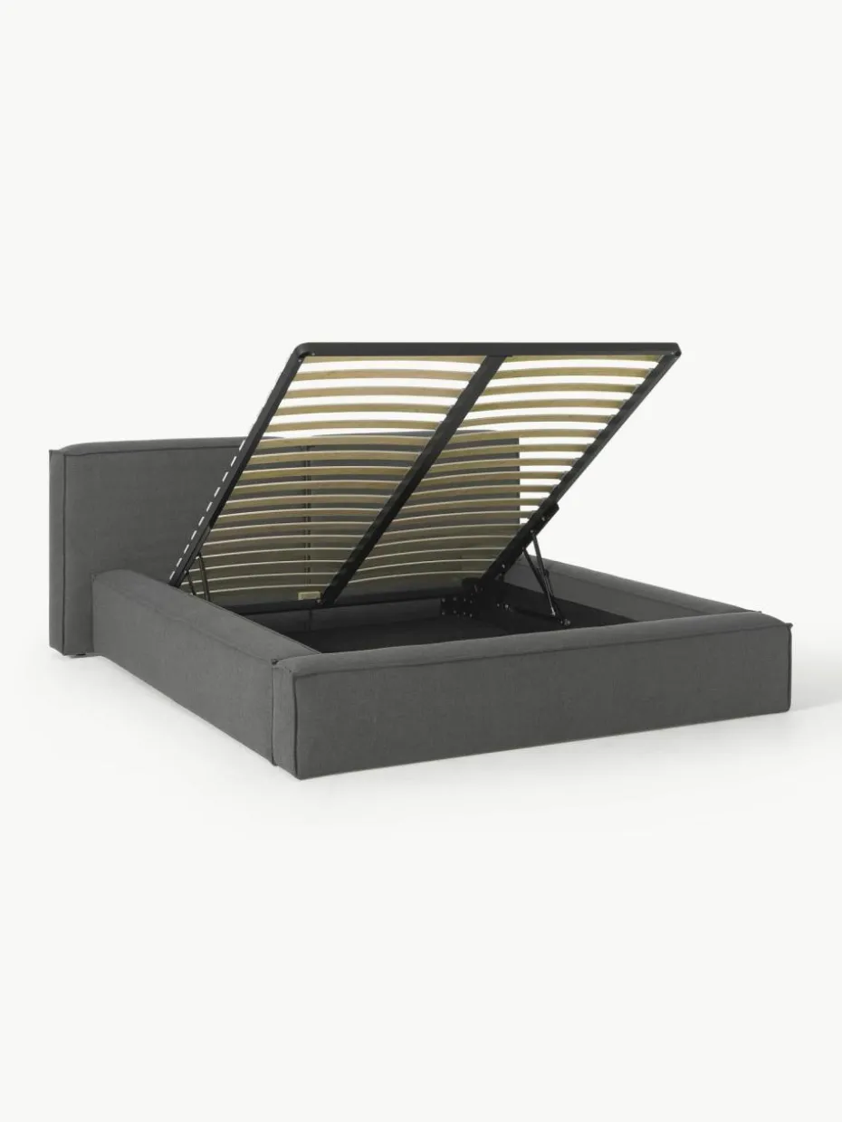 Das Polsterbett verfügt über eine Stauraumfunktion.
