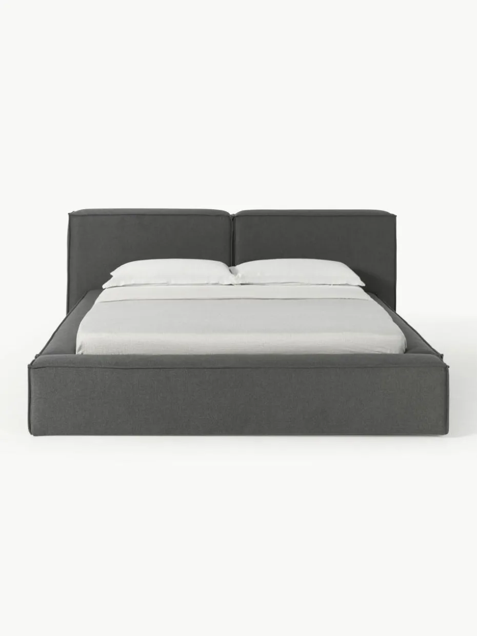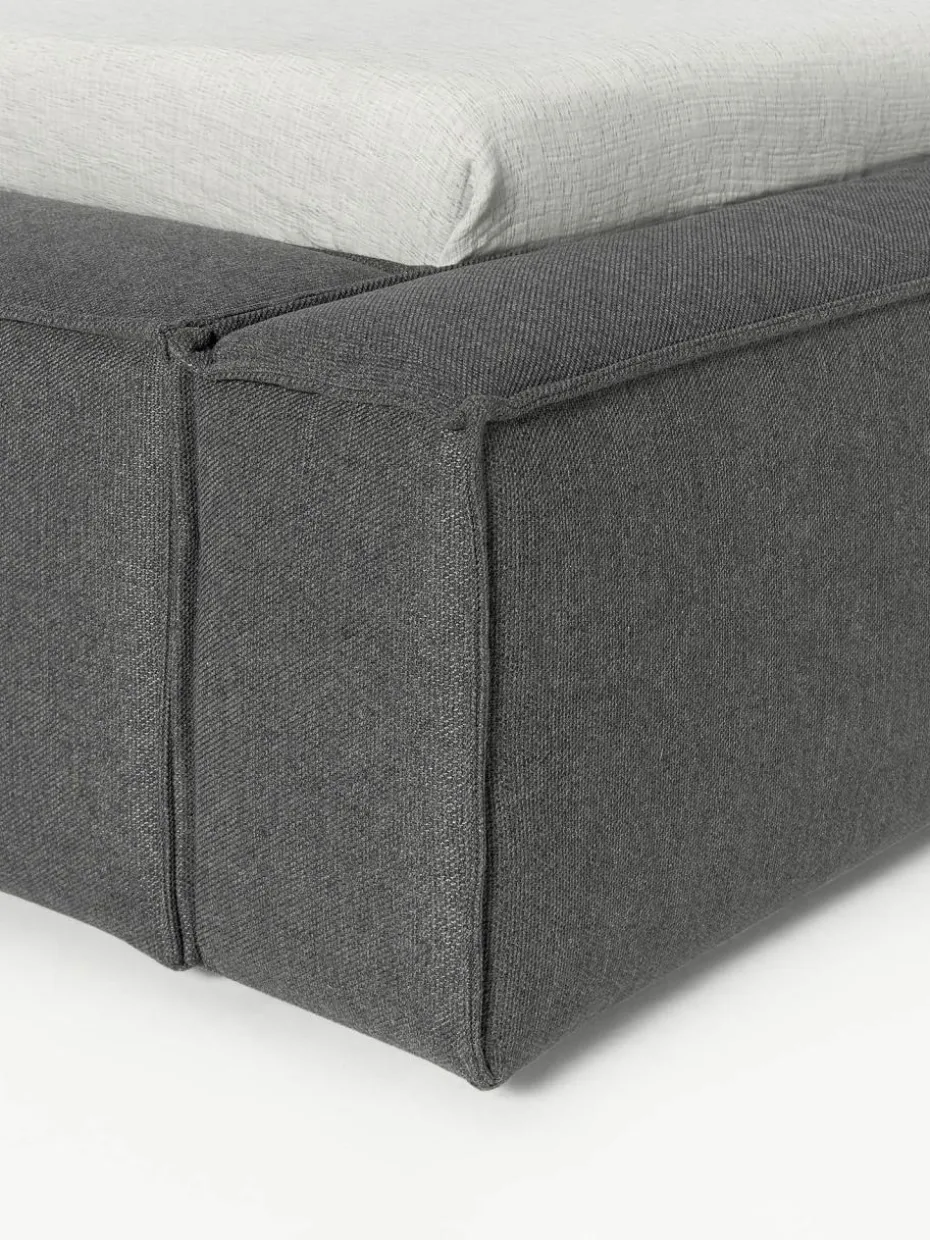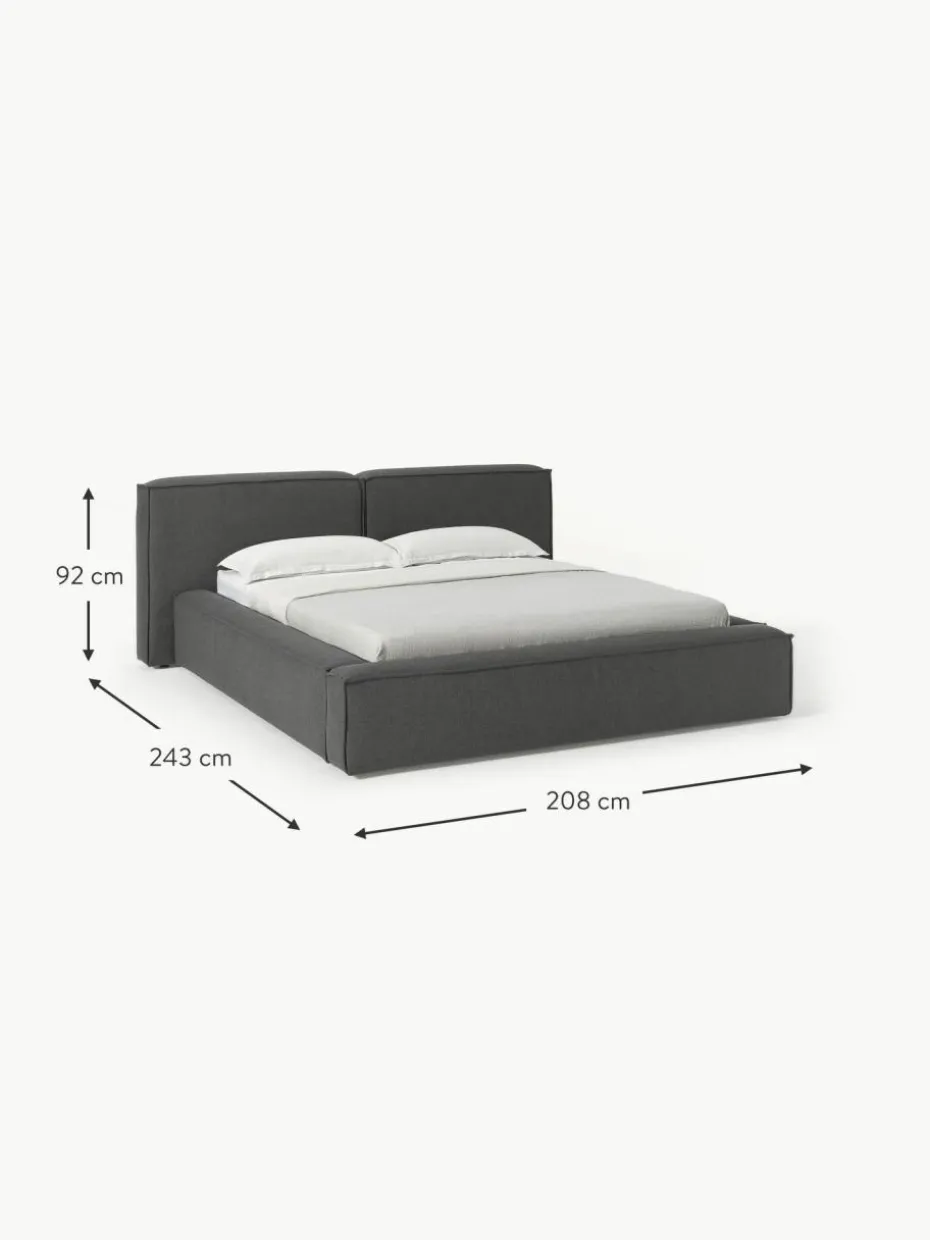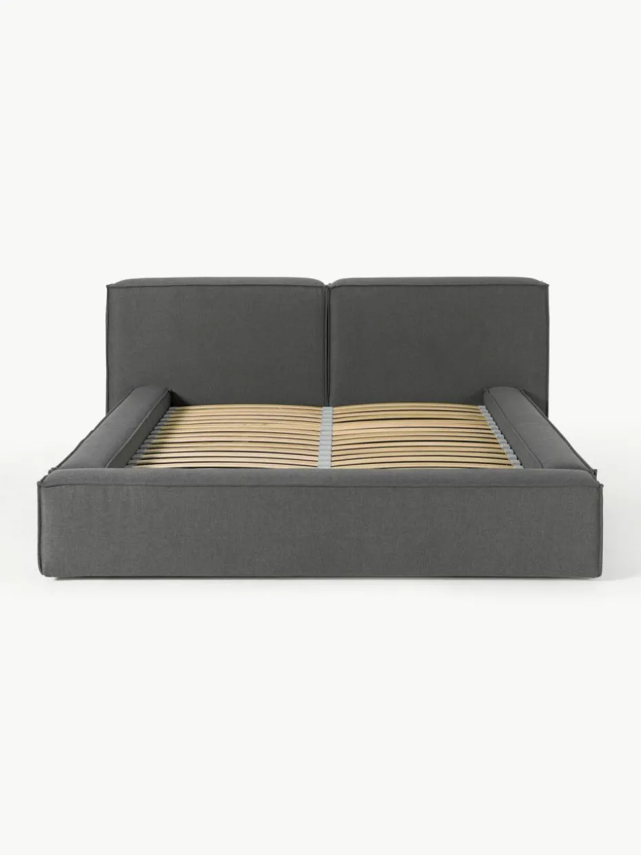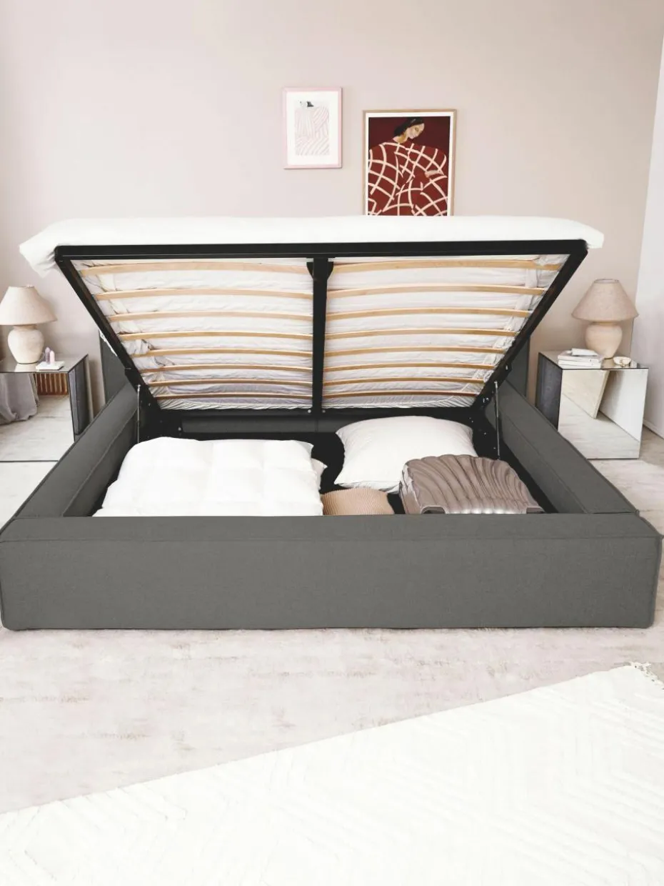 Das Polsterbett verfügt über eine Stauraumfunktion.