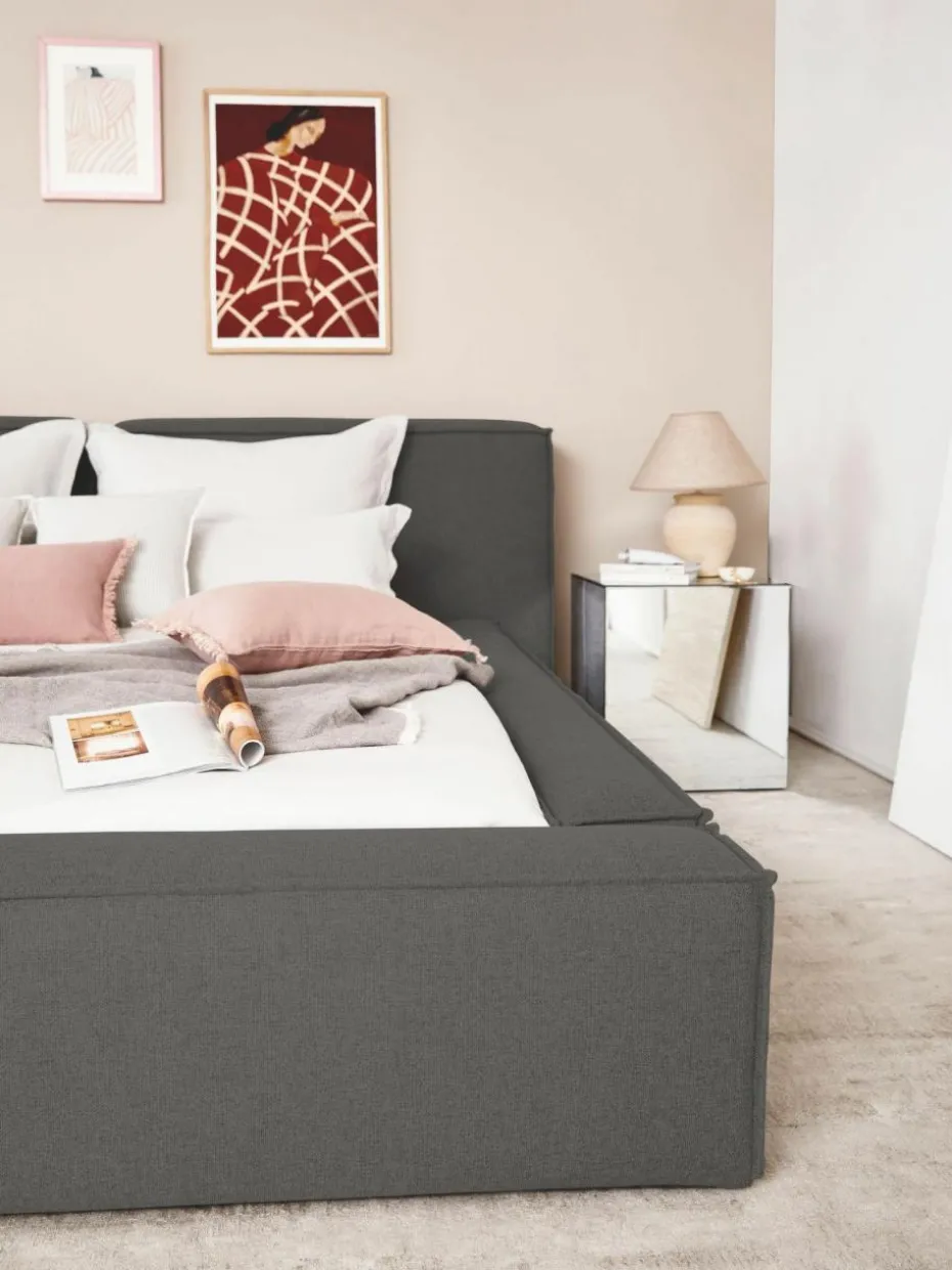 Unsere Bestseller-Serie LENNON begeistert als modulares Sofas ebenso wie als Polsterbett. Die gemütlichen Polsterbetten sind mit und ohne Stauraum und in verschiedenen Farben und Stoffen erhältlich. Die breiten, gepolsterten Rahmen sind ideal als Ablage für Smartphone oder Fernbedienung, das üppig gepolsterte Kopfteil ist super bequem zum Anlehnen beim Lesen, Fernsehen oder Frühstück im Bett. LENNON ist einfach der Inbegriff von Gemütlichkeit.