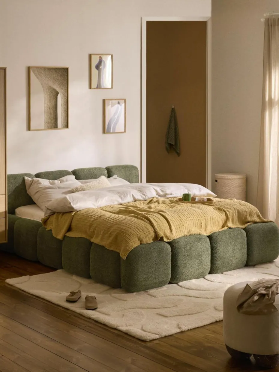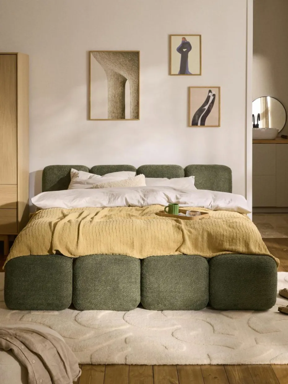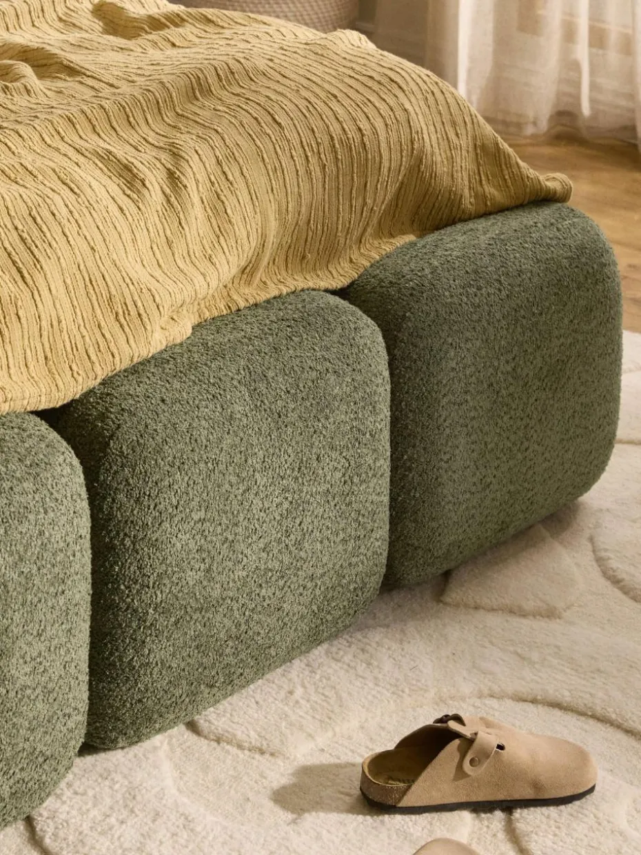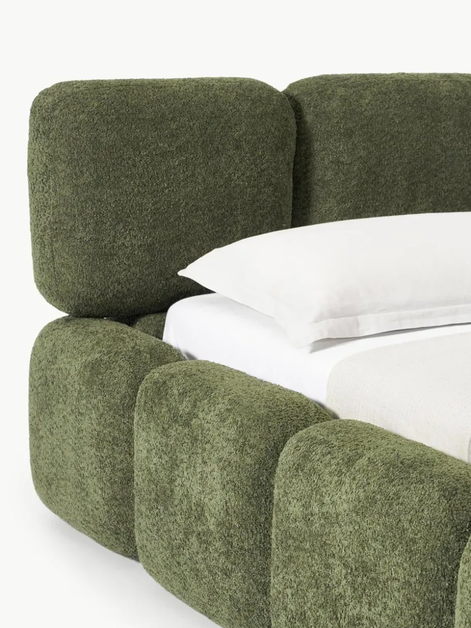Polsterbett Tayla aus Teddy-Bouclé mit Stauraum