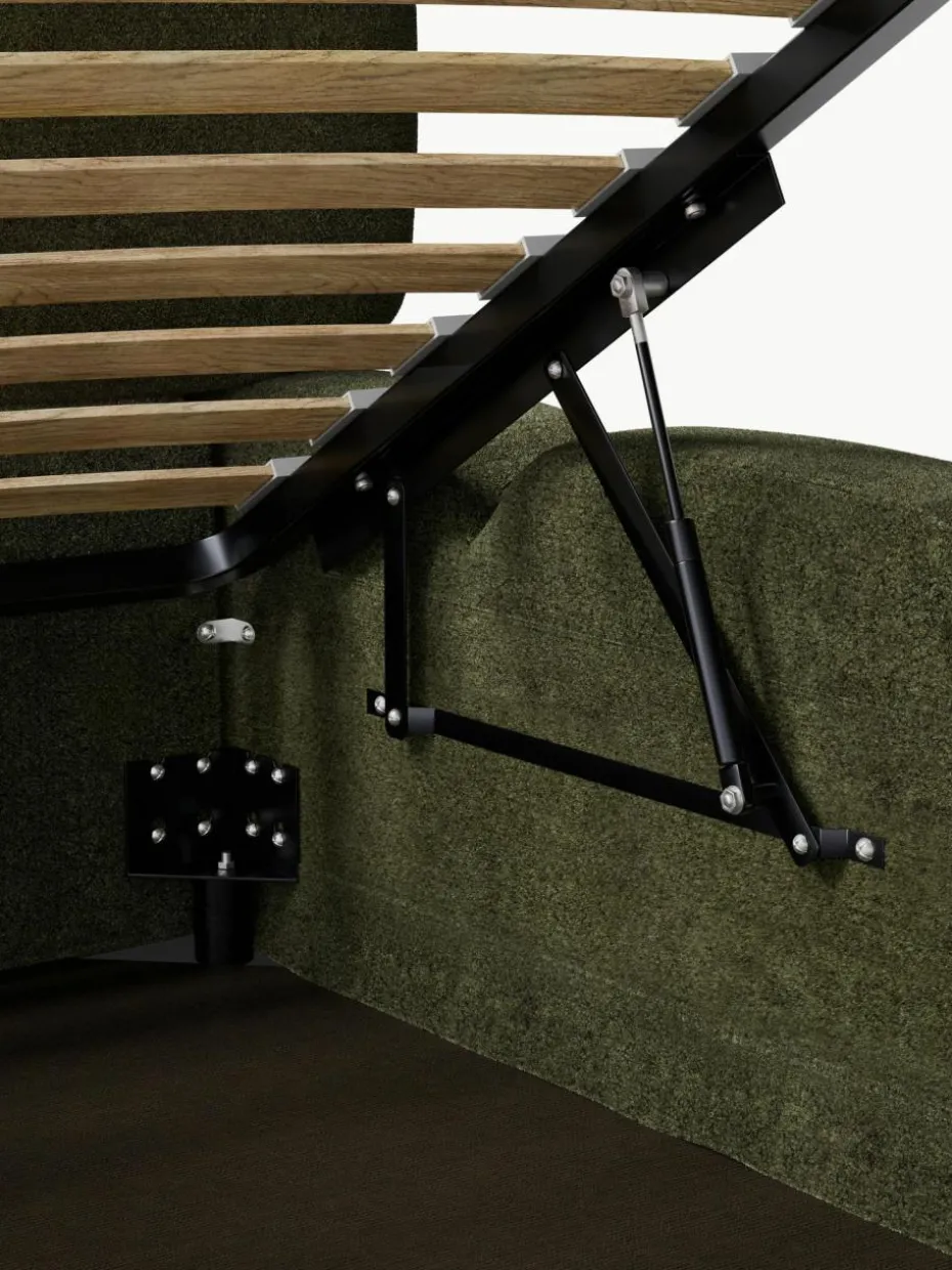 Das Polsterbett verfügt über eine Stauraumfunktion.
