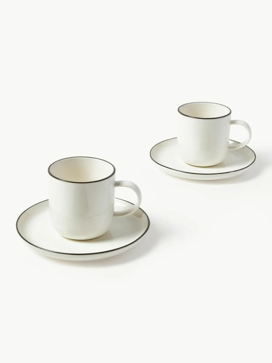 Porzellan-Kaffeetassen Facile mit Untertassen, 2 Stück