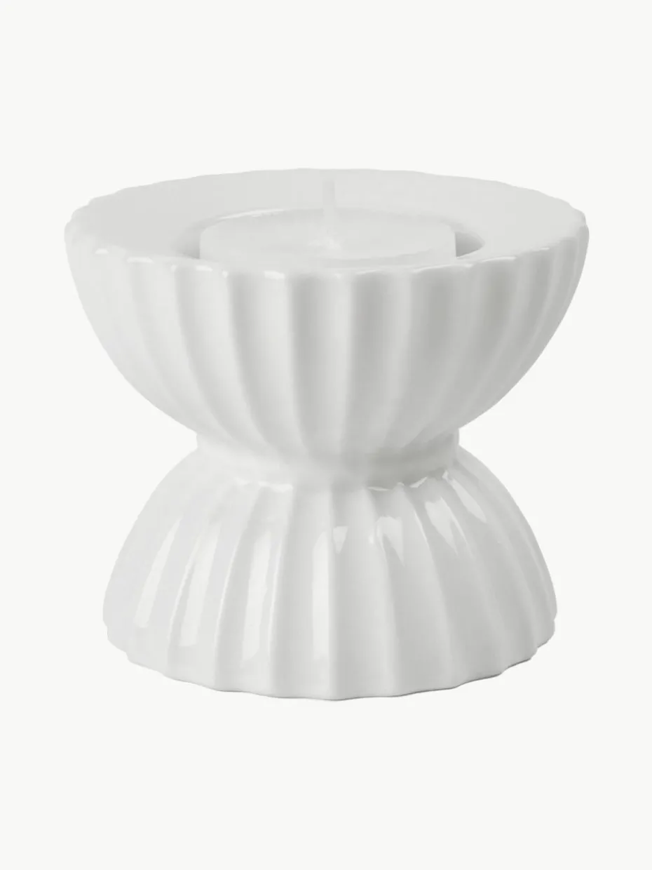 Porzellan-Teelichthalter Tura mit geriffelter Oberfläche