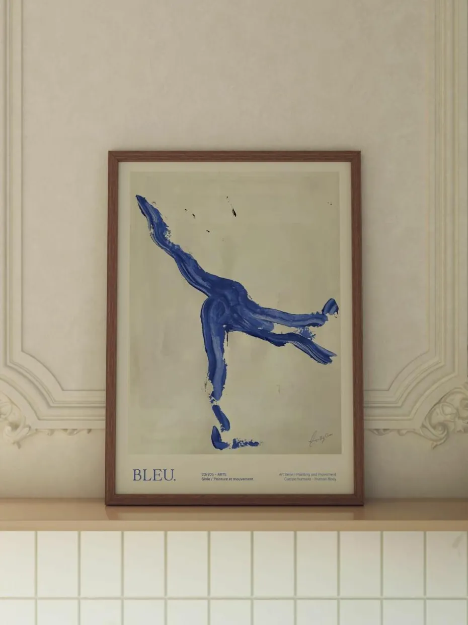 Fange die Essenz von Bewegung und Kunst mit Bleu ein, einem atemberaubenden Poster, das die fließende und dynamische Form des menschlichen Körpers in Bewegung verkörpert. Mit seinem leuchtenden Blau und dem minimalistischen Hintergrund verleiht es jedem Raum ein modernes, künstlerisches Flair und ist perfekt für alle, die kühne Ausdrucksformen von Bewegung und Farbe schätzen.