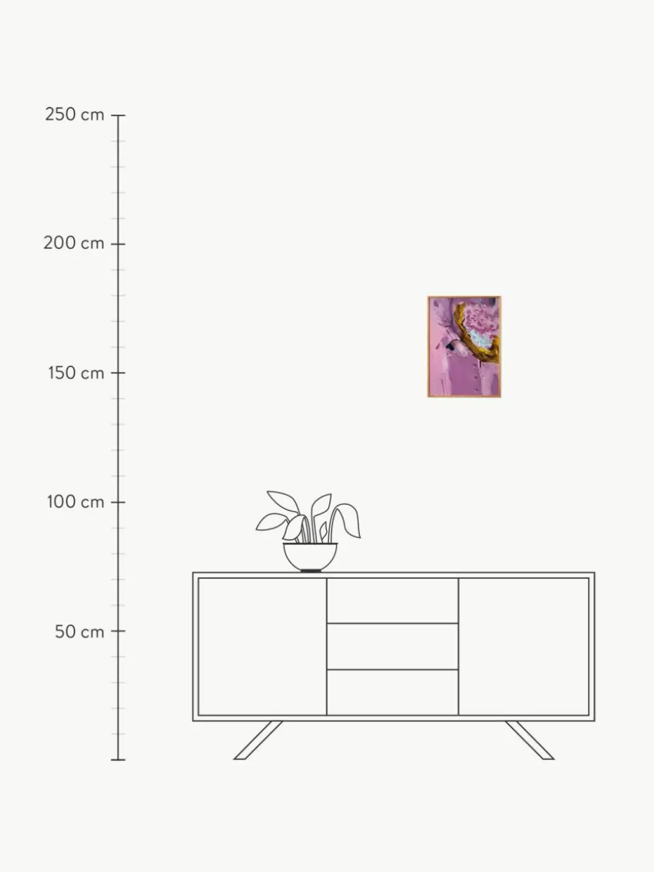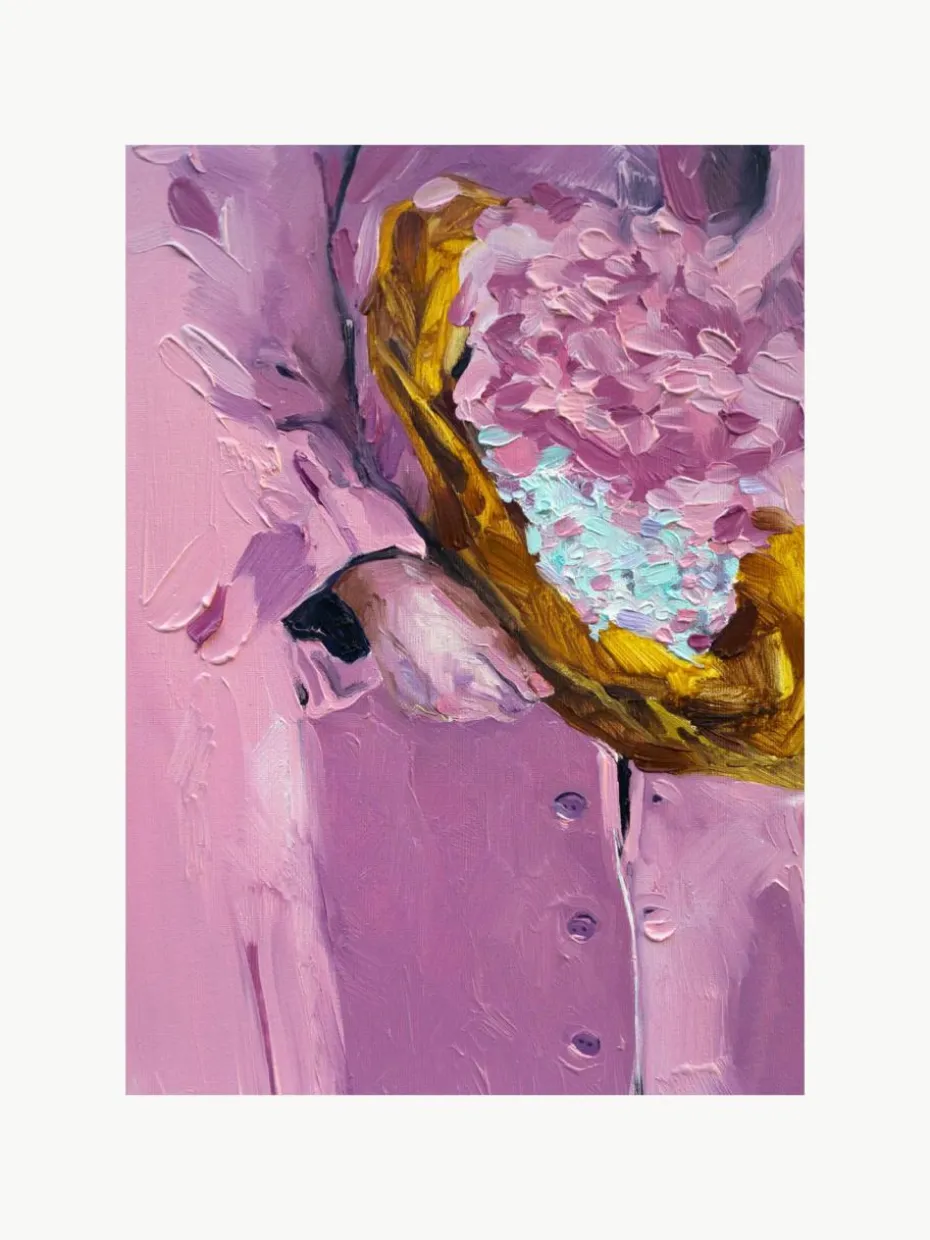 BLOOMING MOOD ist ein Kunstdruck der in Kopenhagen ansässigen Künstlerin Lolita Pelegrime. Lebhafte Lavendeltöne und ein Hauch von Blau verbinden sich zu einer harmonischen Komposition. Eine detaillierte Ansicht einer Figur, die einen Blumenstrauß hält, erwacht durch die reichen Texturen zum Leben.