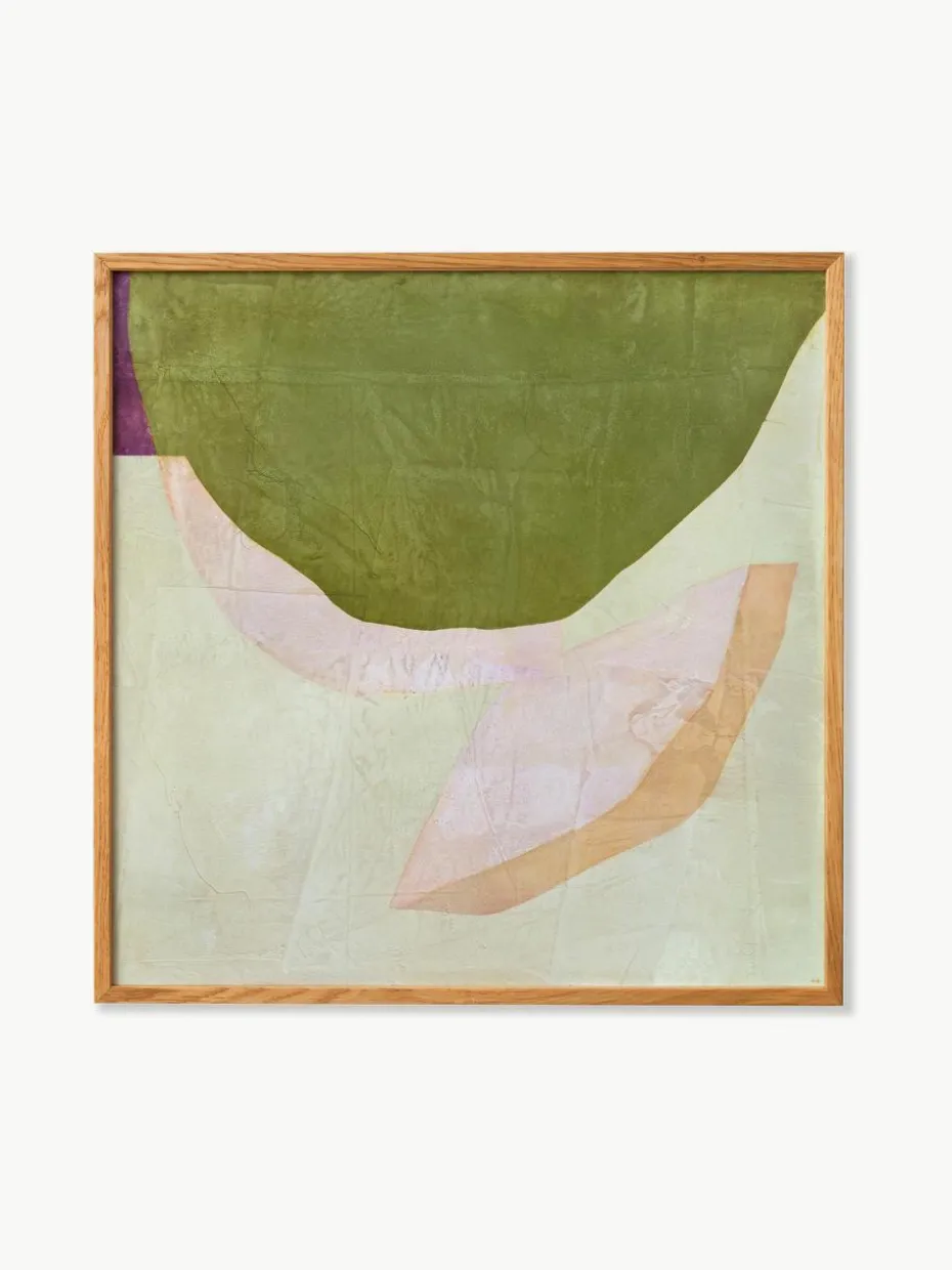 RITMO ist ein Kunstdruck der mexikanischen Künstlerin Berenice Hernandez. Organische, abstrakte Formen verweben sich in der neuesten Kollektion von Berenice Hernandez für Paper Collective. Auf Leinwand und rohem Leinen gemalt, mischen sich Töne von Grün und tiefem Violett mit erdigen Rosatönen, Gelb und Beige, um Kompositionen zu schaffen, die den fließenden Rhythmus – oder RITMO – in jedem Stück feiern.