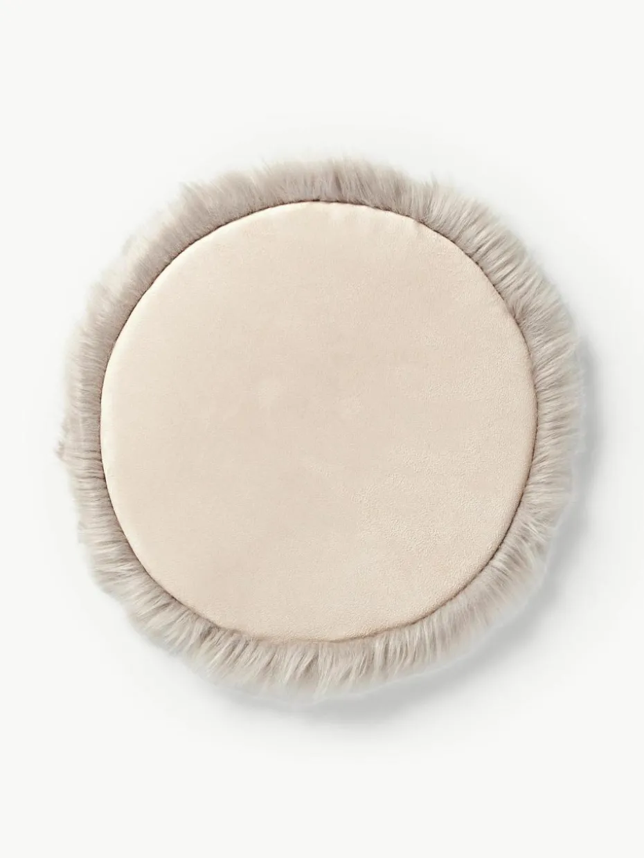 Runde Kunstfell-Sitzauflage Mathilde, glatt