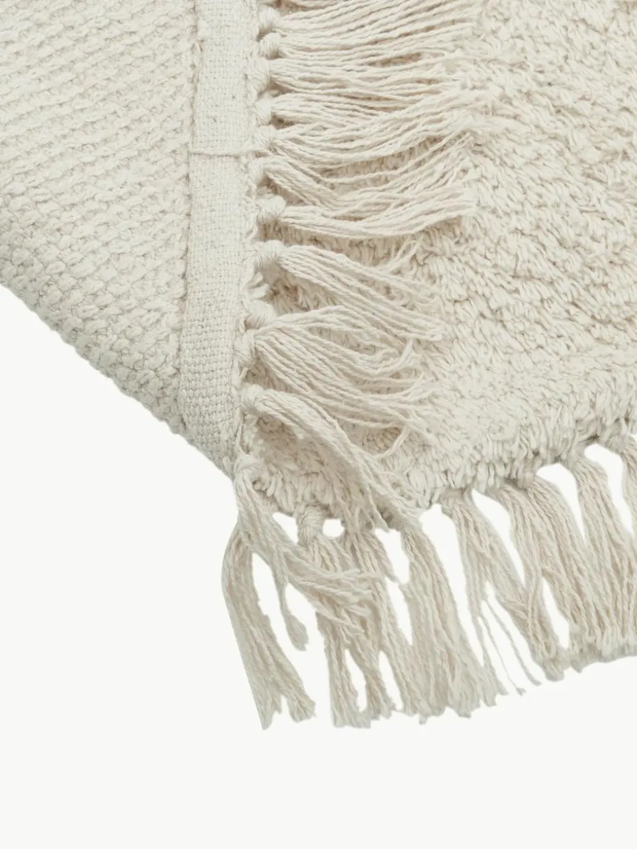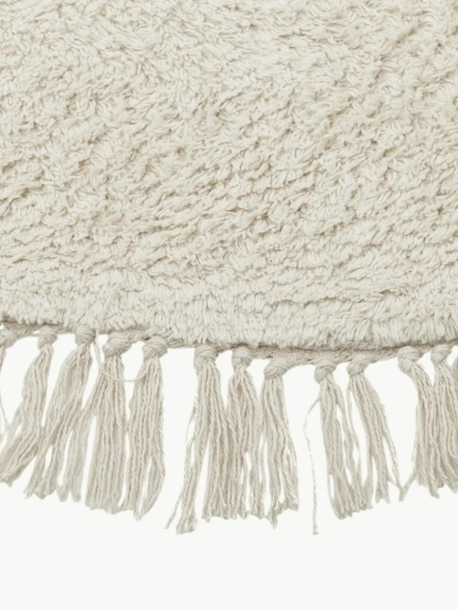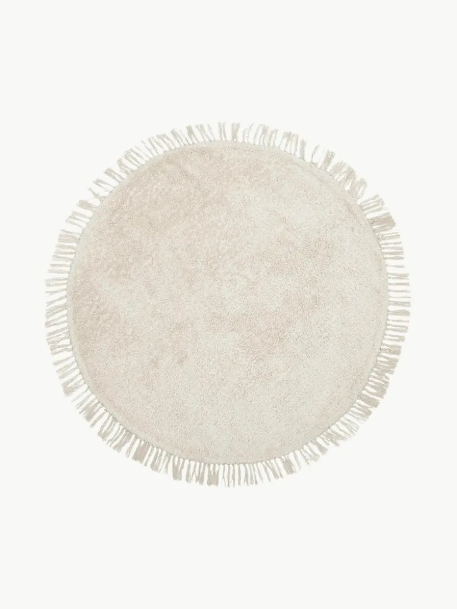 Runder Baumwollteppich Daya mit Fransen, handgetuftet