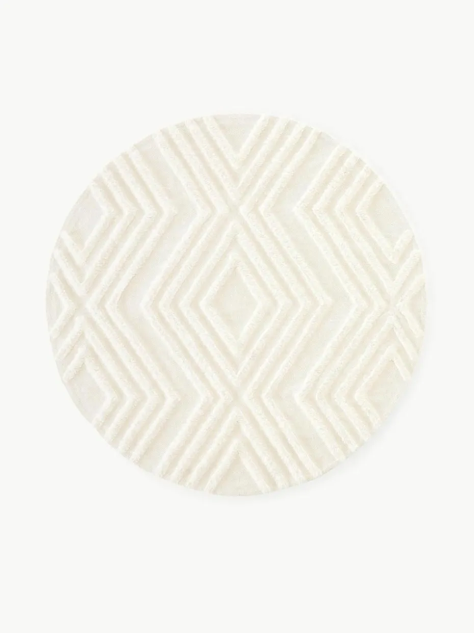 Runder Baumwollteppich Ziggy mit erhabener Hoch-Tief-Struktur