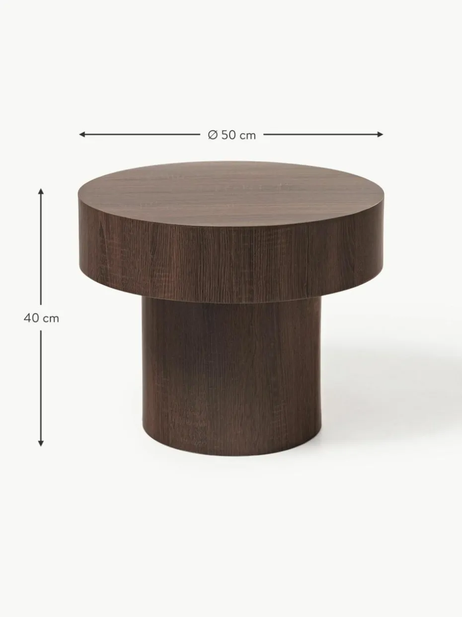 Ein moderner Beistelltisch, der durch seine weichen Formen, sein stilvolles Design und seine erdige Farbe besticht! Der Malung Tisch besteht aus dunkelbraunem MDF und ist auf zwei Ebenen zylindrisch, was dem Möbel eine geschmackvolle Dimension verleiht. Der Tisch ist äußerst nützlich als Relieffläche, Sockel oder Beistelltisch, und seine geringe Größe erleichtert das Aufstellen und Bewegen im Haus. Bringe Deine Einrichtung mit einem Beistelltisch, der die Trendcharts erklimmt, auf die nächste Ebene!“,“pdp_care_label“:“Der Beistelltisch wird fertig montiert geliefert und kann nach dem Auspacken sofort verwendet werden.