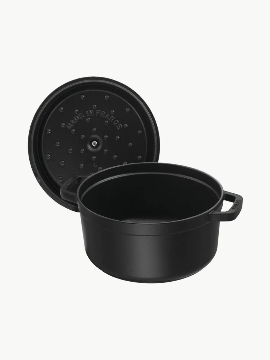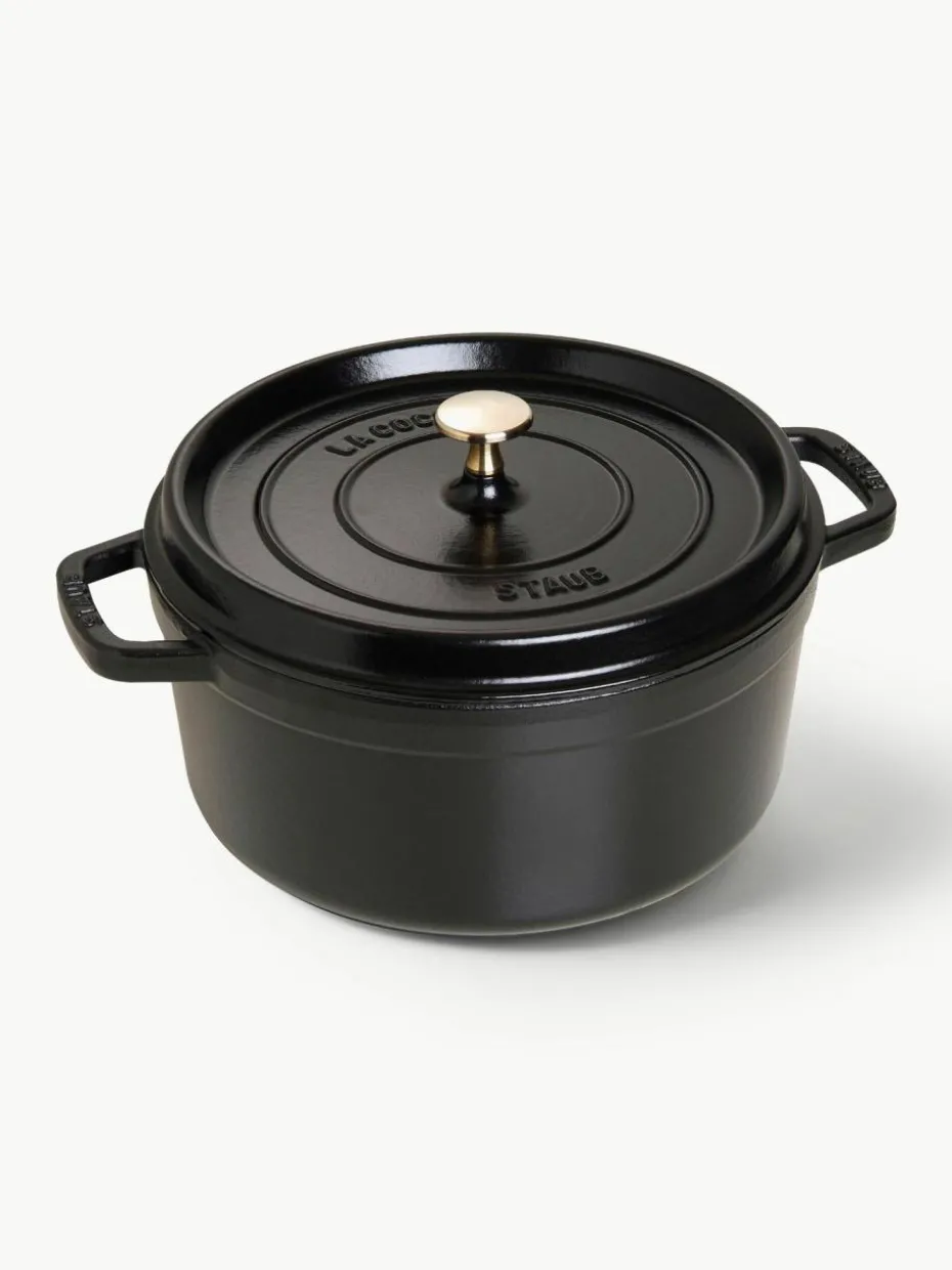 Der Bräter La Cocotte besitzt zahlreiche Vorteile, die Du entdecken solltest. In erster Linie begeistern ihre aufwendigen Beschichtungen. Im Inneren befindet sich eine Emaillierung, die den Topf im Vergleich zu rohem Gusseisen schnell gebrauchsfertig macht. Zusätzlich wird ein sehr guter Schmoreffekt erreicht, der sich sogar über die Nutzungsdauer hinweg verbessert. Die Kombination aus Gusseisen und Emaille eignet sich ideal, um Hitze oder Kälte zu speichern. Diese wird gleichmäßig an das Gargut abgegeben, sodass Du ein durchweg erfolgreiches Schmorergebnis erhältst.
