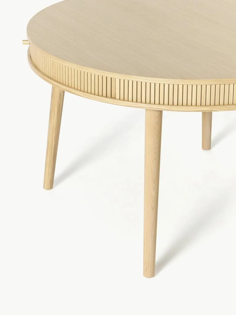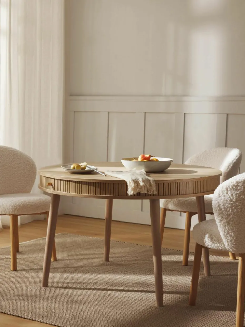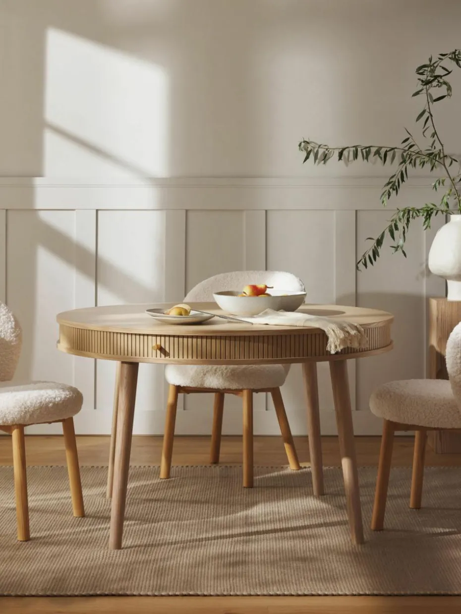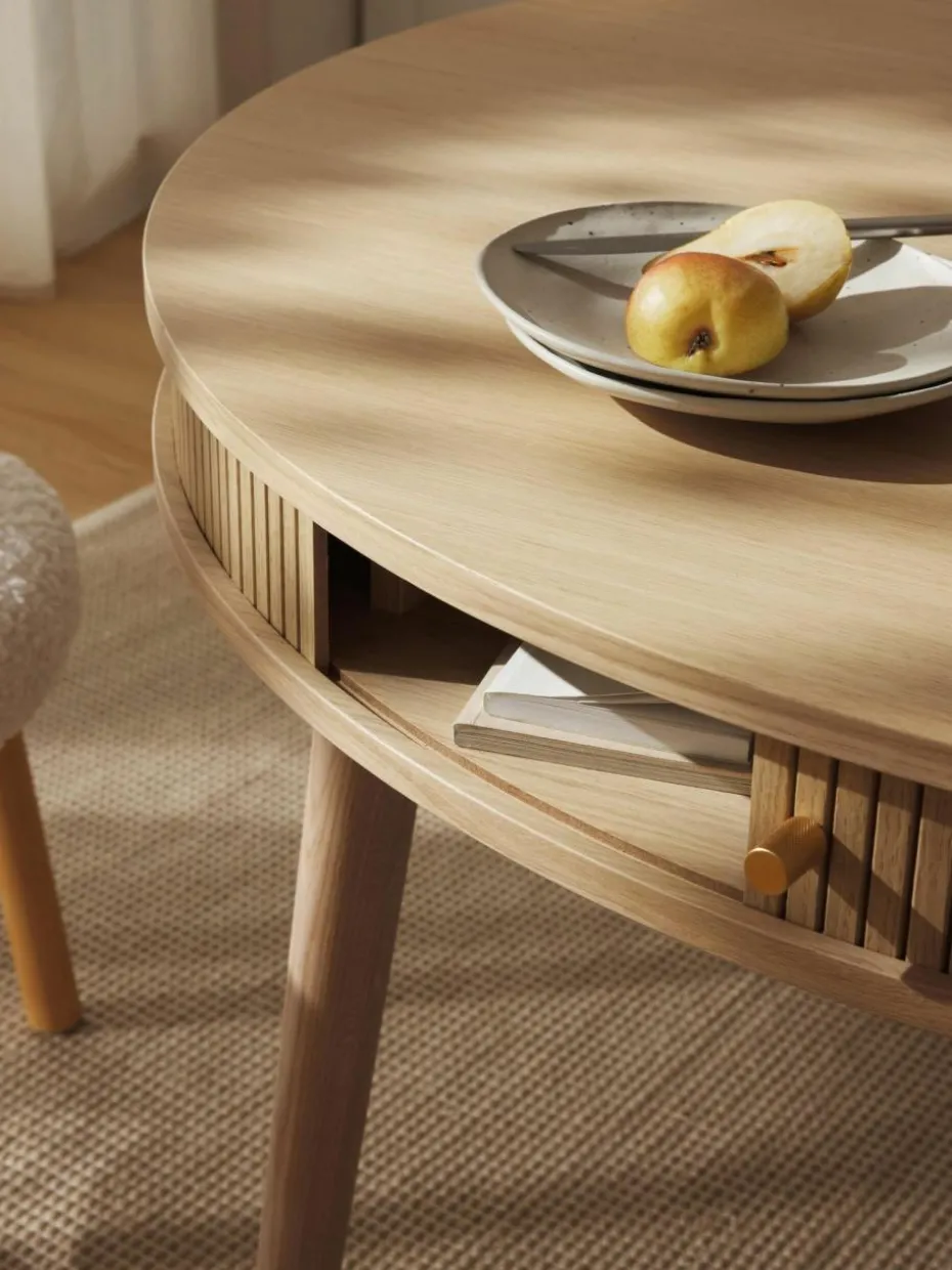 Get to know CALARY: Die Serie umfasst Esstische, Sideboards, Schreibtische und mehr – alle aus FSC®-zertifiziertem Holz aus verantwortungsvollen Quellen. Key-Designelement sind die aufschiebbaren, geriffelten Holzfronten, die jedem Möbelstück eine besondere Haptik und Optik verleihen. Durch das wandlungsfähige Design passt sich CALARY jedem Stil perfekt an!