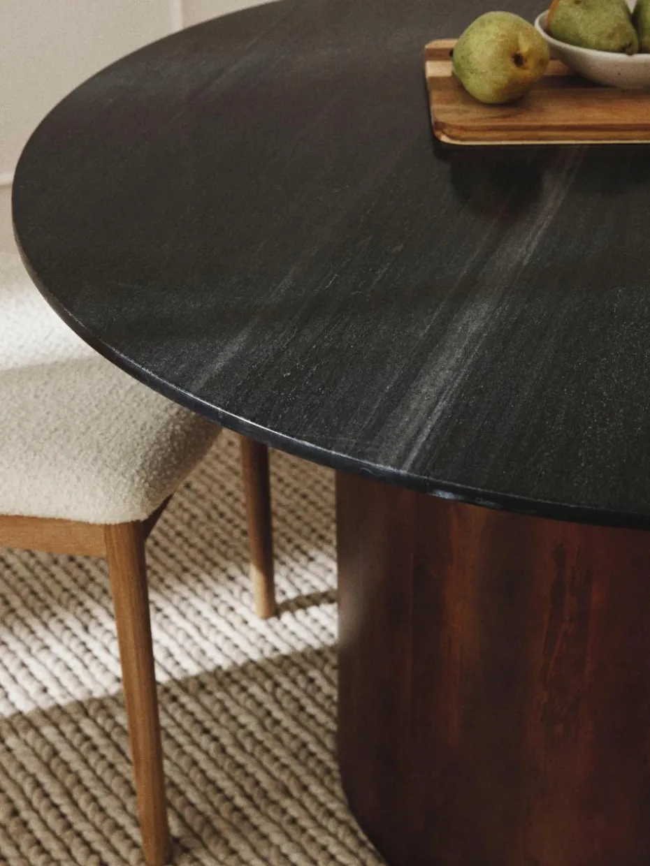 Marmor ist ein weicher Kalkstein und dadurch anfällig gegenüber Feuchtigkeit und Säure. Achte also bitte darauf, dass Flüssigkeiten sofort entfernt werden. Zur Reinigung und Pflege verwende bitte nur PH neutrale oder für Marmor empfohlene Mittel.