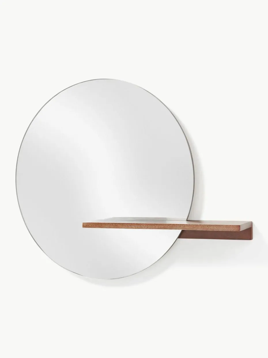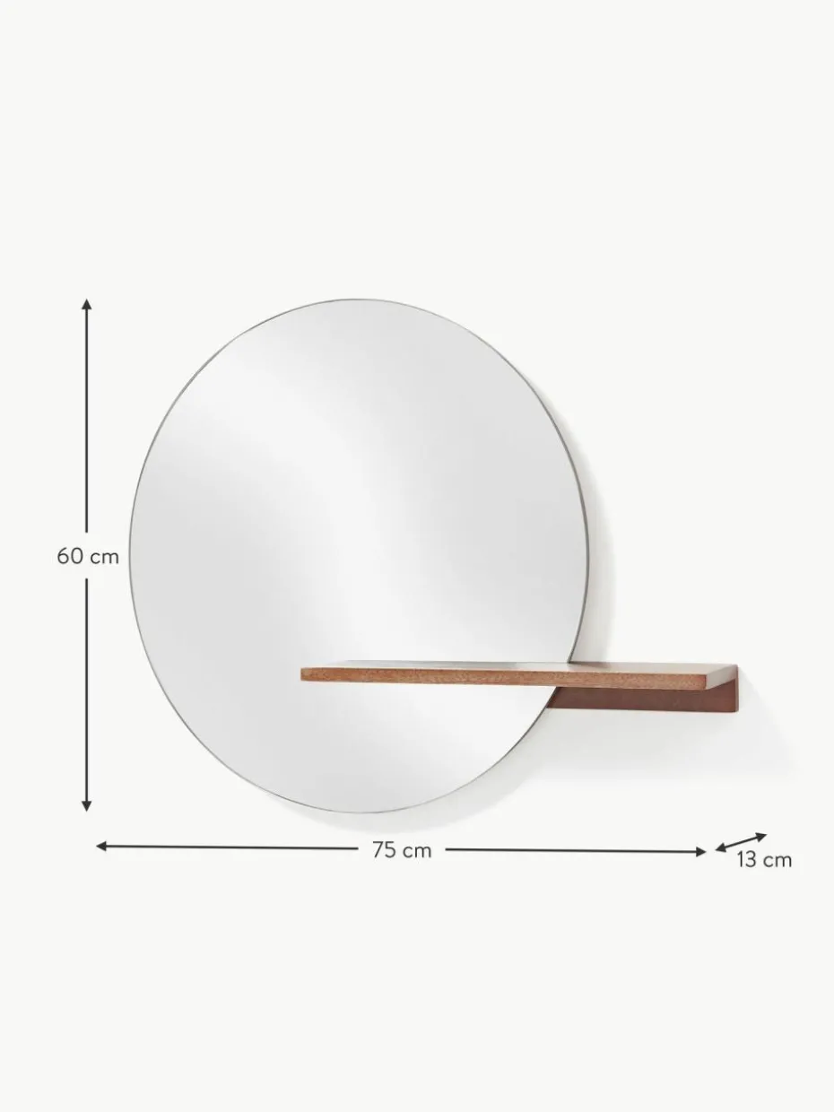 Runder Wandspiegel Sandro mit Ablage aus Holz