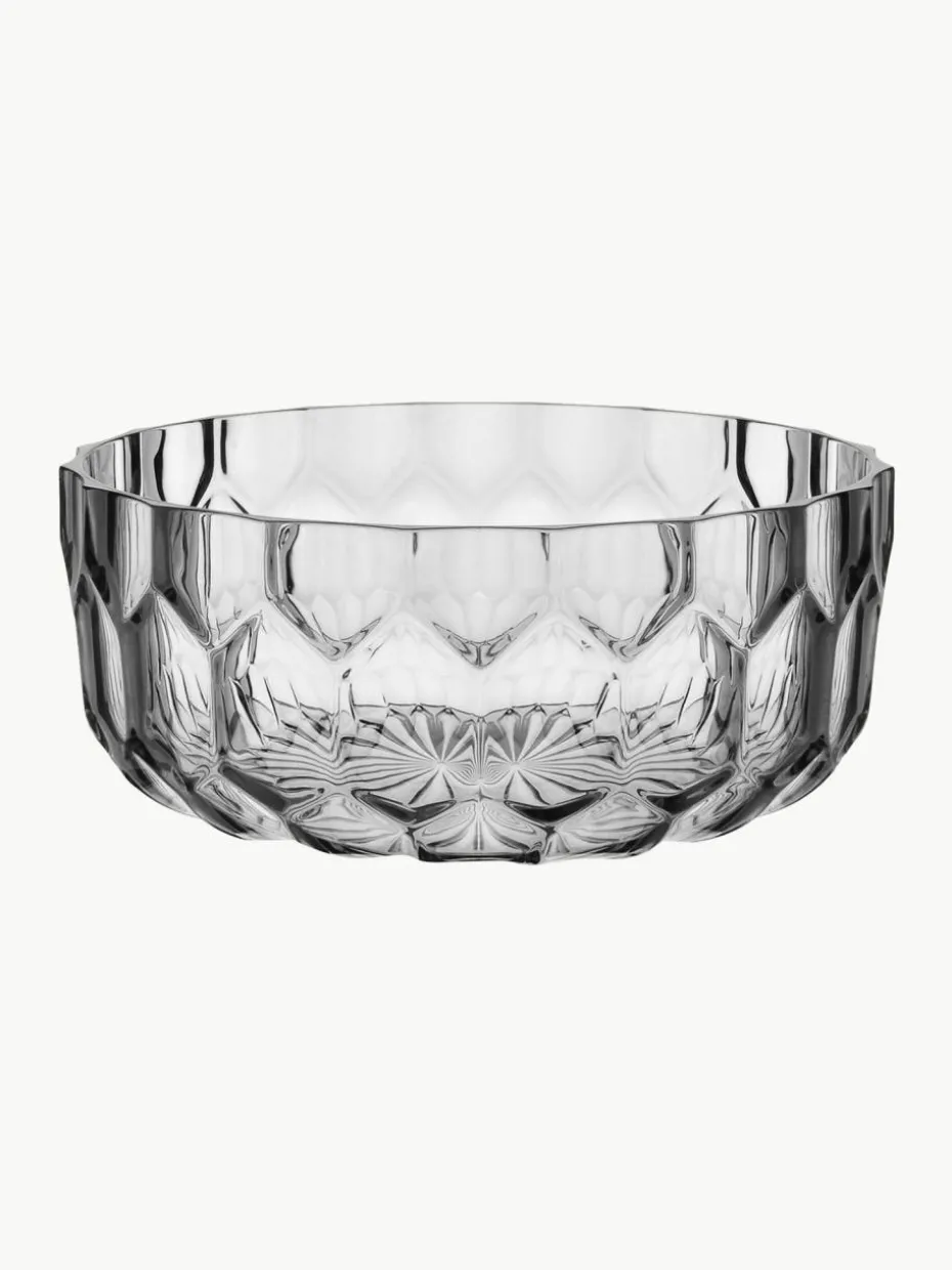 Jellies von Designerin Patricia Urquiola ist eine vielseitige Serie von Tellern, Tabletts, Gläsern, Schüsseln, Karaffen, Kaffeetassen und Zuckerdosen. Die Besonderheit der Serie ergibt sich aus der Tatsache, dass jedes Modell ein anderes Muster hat. Organische Formen lehnen sich an Aspikformen von früher an. Die Zusammenstellung von Tellern verschiedener Formen und Farben sorgt für ein einfallsreiches, aber gleichzeitig unaufdringliches, kreatives und edles Gesamtbild.