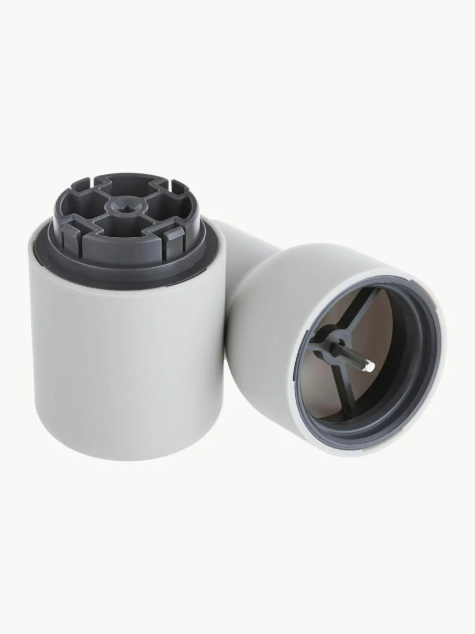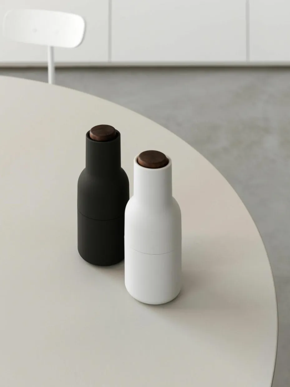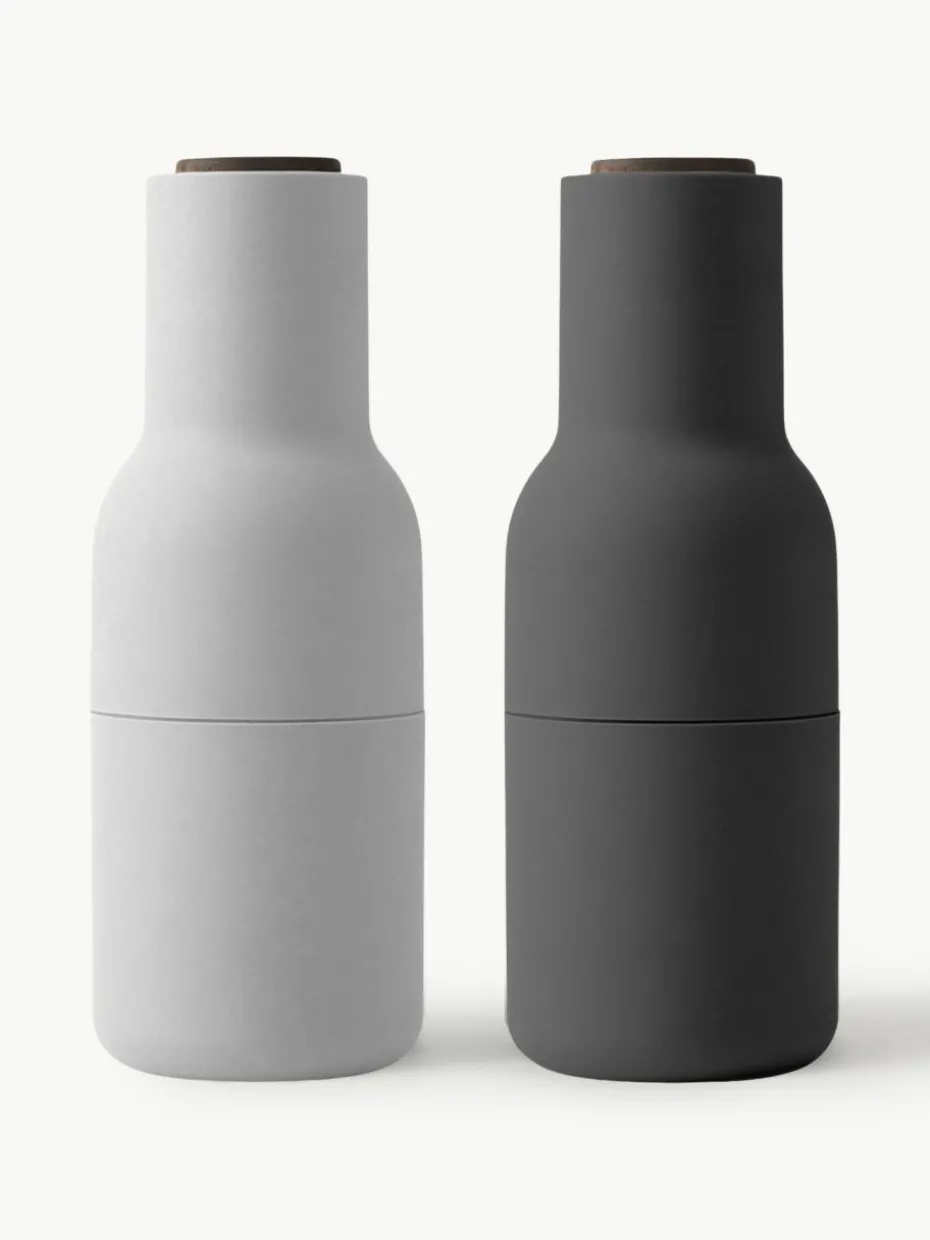BOTTLE GRINDER ist ein zweiteiliges Set von Salz- und Pfeffermühlen, die jeweils mit einem leistungsstarken Keramikmahlwerk ausgestattet sind, das eine Vielzahl von Gewürzen mühelos mahlt. Das Set hat die Form von Flaschen, die bequem in der Hand liegen, und wird in einer Reihe von strapazierfähigen Materialien und Farben angeboten, darunter Barley, einem warmen und beruhigenden neutralen Farbton, der in jedes Küchendesign passt. Das aufrechte Design ist einfach zu bedienen, zu befüllen und zu reinigen und sorgt dafür, dass die Oberflächen frei von unerwünschten Rückständen bleiben, während die Speisen perfekt gewürzt werden.
