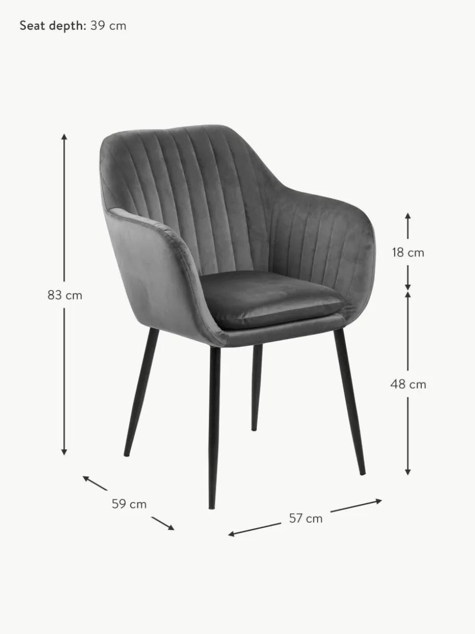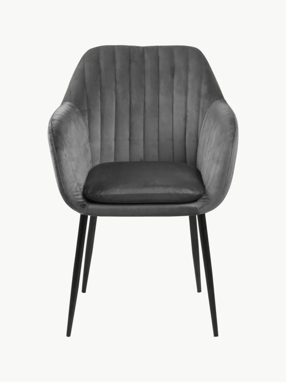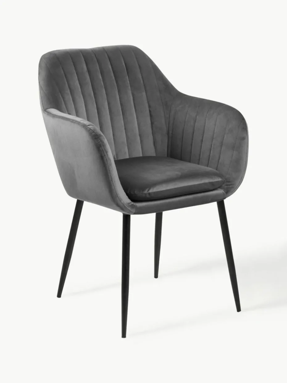 Samt-Armlehnstuhl Emilia mit Metallbeinen