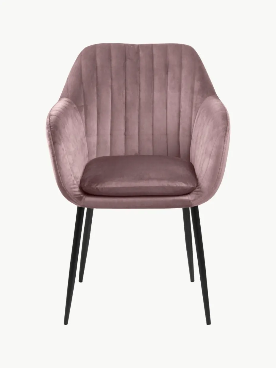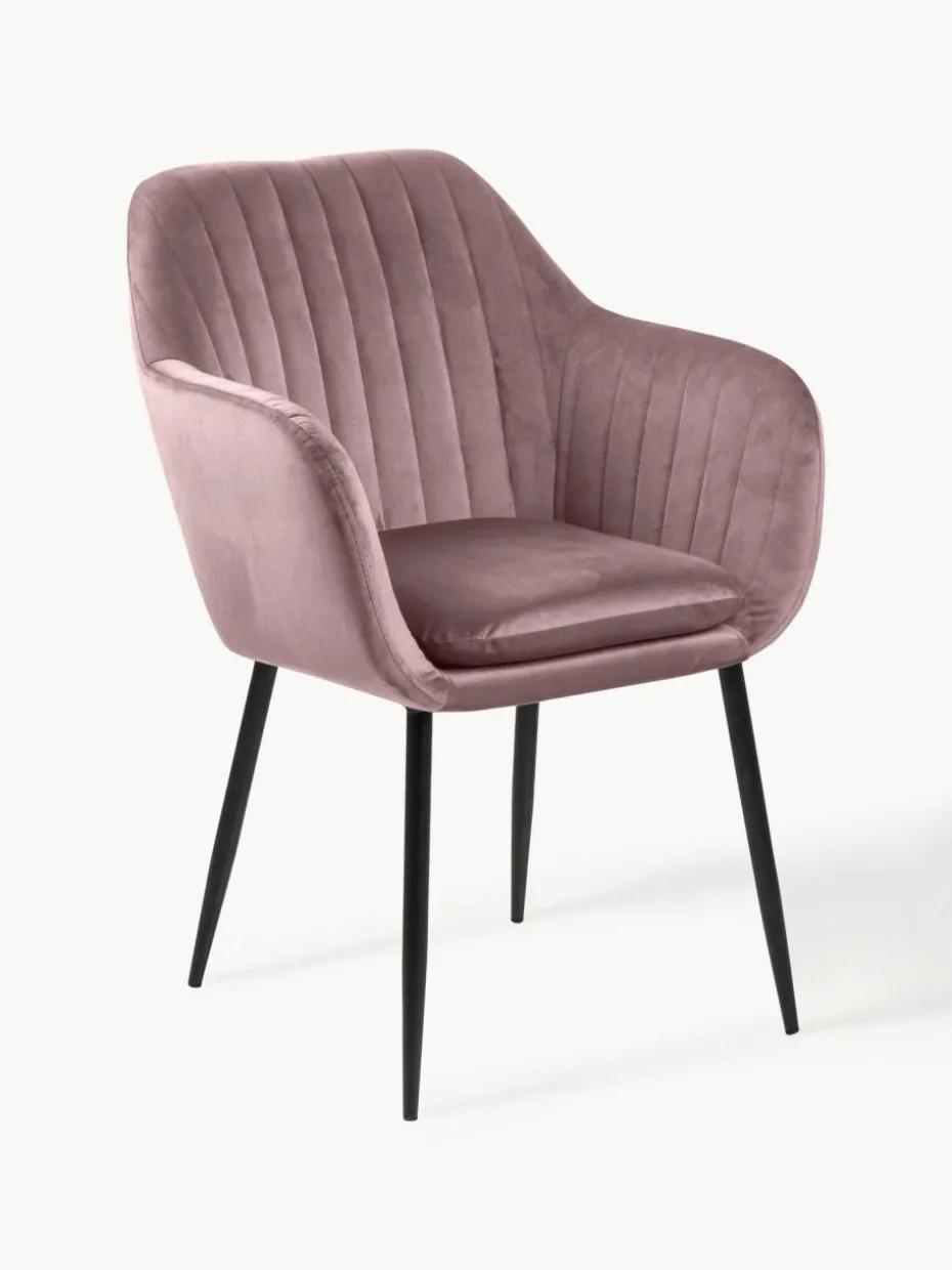 Samt-Armlehnstuhl Emilia mit Metallbeinen