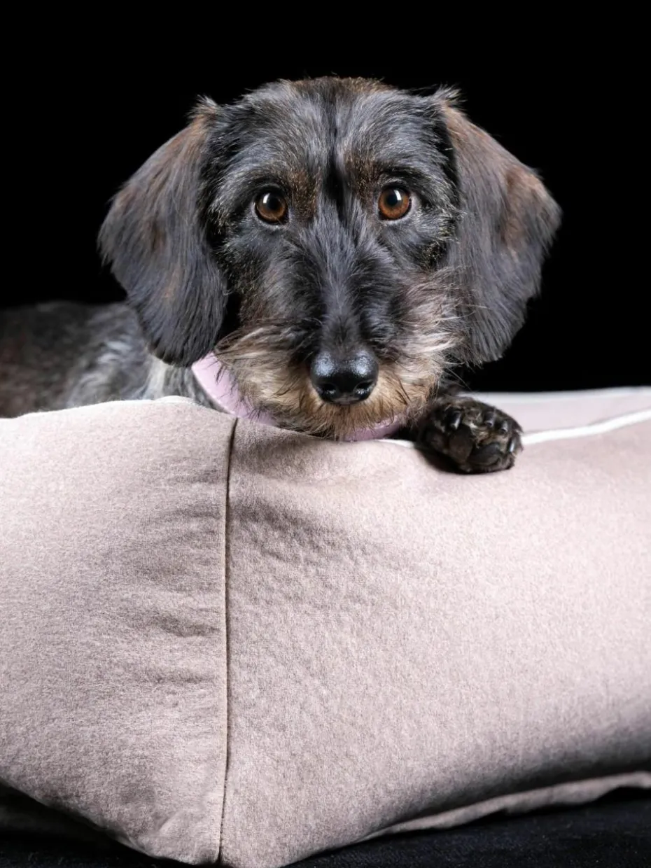 Das Hundebett aus hochwertigem Möbelstoff ist nicht nur extrem strapazierfähig und kratzfest, sondern auch äußerst pflegeleicht. Ein clever integrierter, verdeckter Reißverschluss ermöglicht ein einfaches Wechseln des Bezugs und schützt zugleich den Boden vor Kratzern. Das Innenleben besteht aus 3D-gekräuselter, silikonisierter Hohlfaser – einem Material, das üblicherweise in Luxusbettwaren verwendet wird.