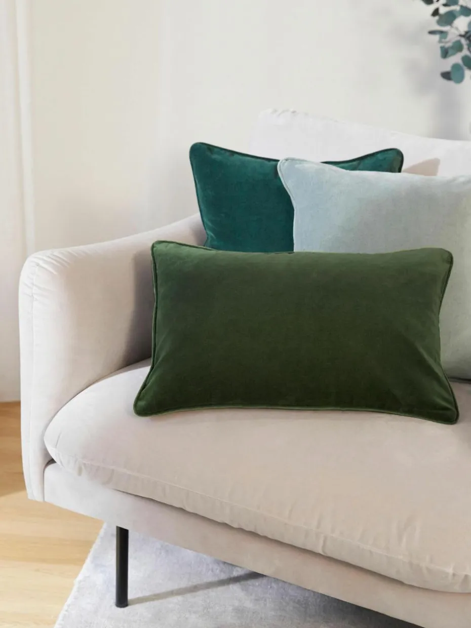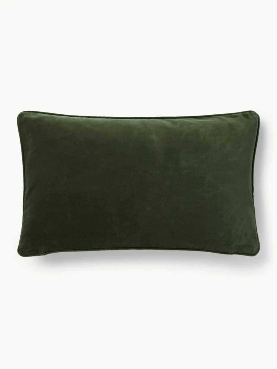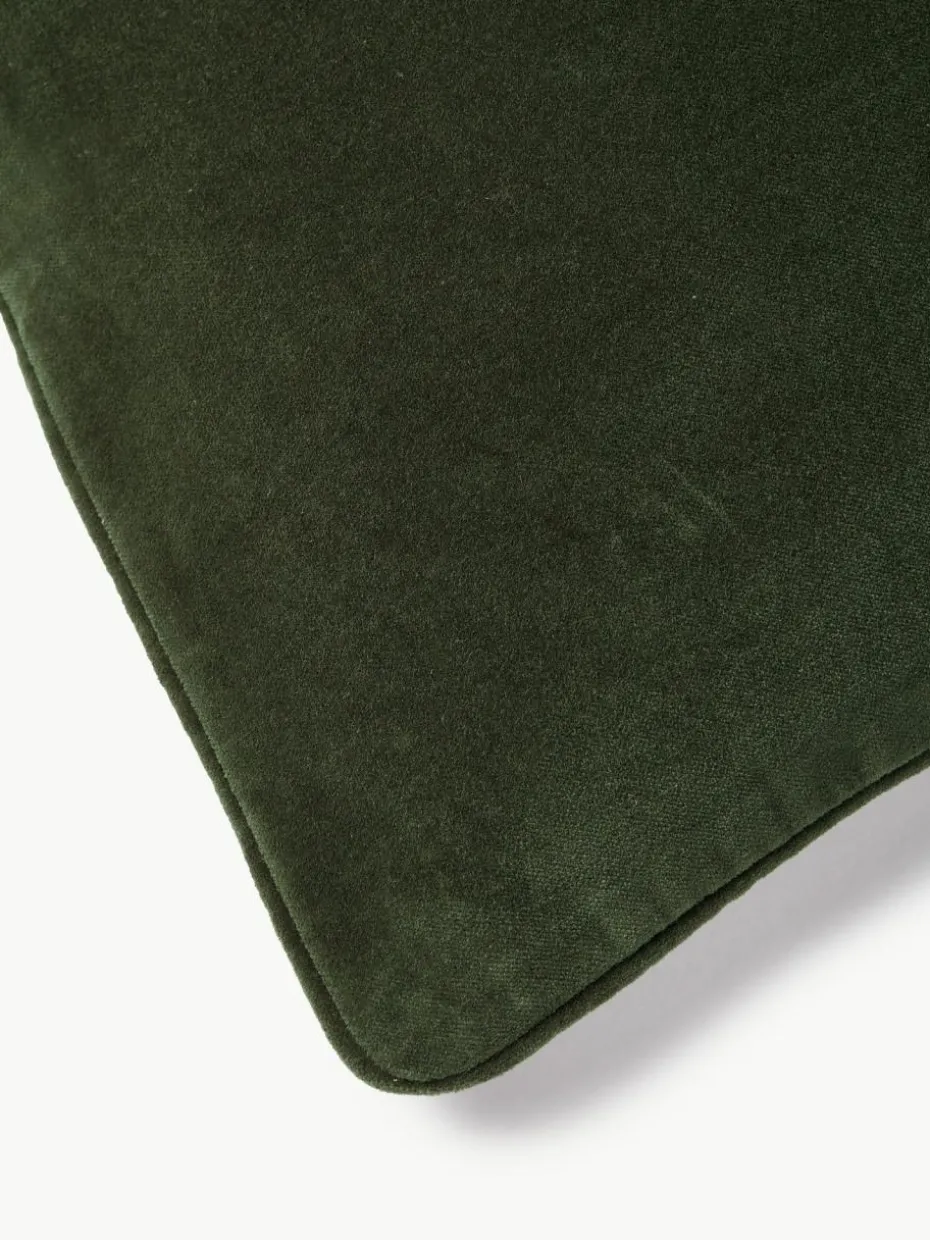 Die Samt-Kissenhülle mit Kederumrandung wird ohne Inlett geliefert und verfügt über einen Reißverschluss.
