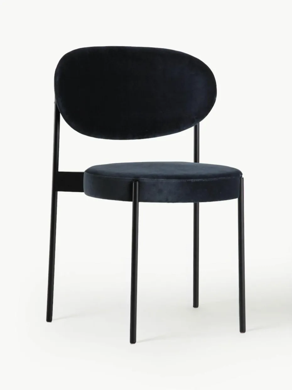 Verner Panton hatte die Serie 430 als eine Studie der Schlichtheit entworfen, die gleichzeitig den gleichen Komfort wie ein Sessel bietet. Dazu hat er den vollständig gepolsterten Sitz mit einem traditionellen Gurtband versehen, um das Körpergewicht auszugleichen, und eine breite, anschmiegsame Rückenlehne geschaffen, die auf einem schlanken, eleganten Rahmen ruht, der an der Außenseite von Sitz und Rückenlehne angebracht ist.
