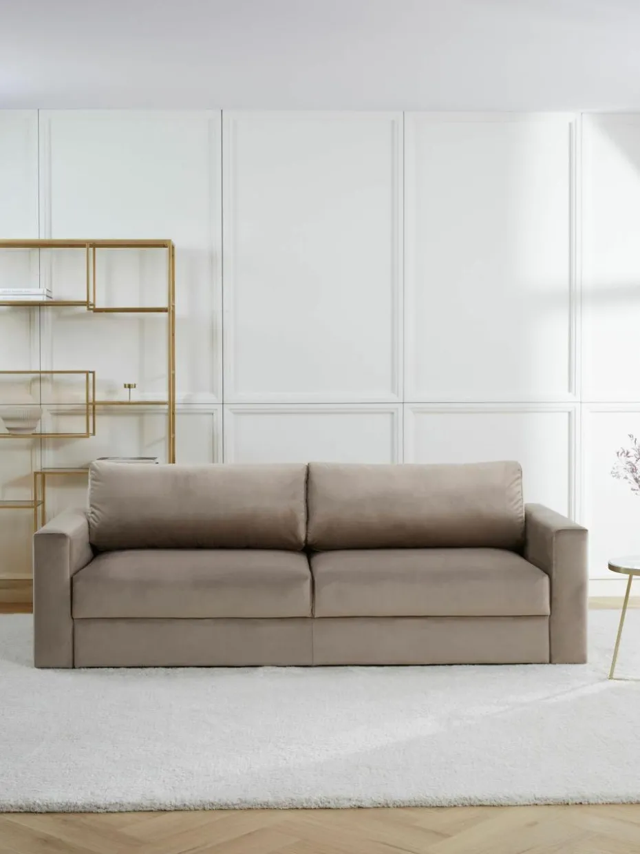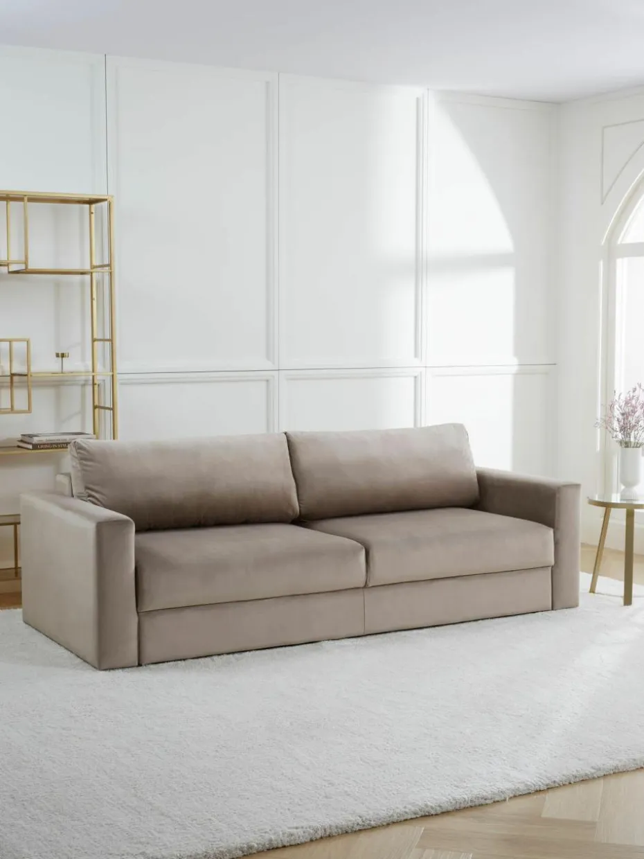 Schlafsofa mit zwei abnehmbaren Rückenkissen.