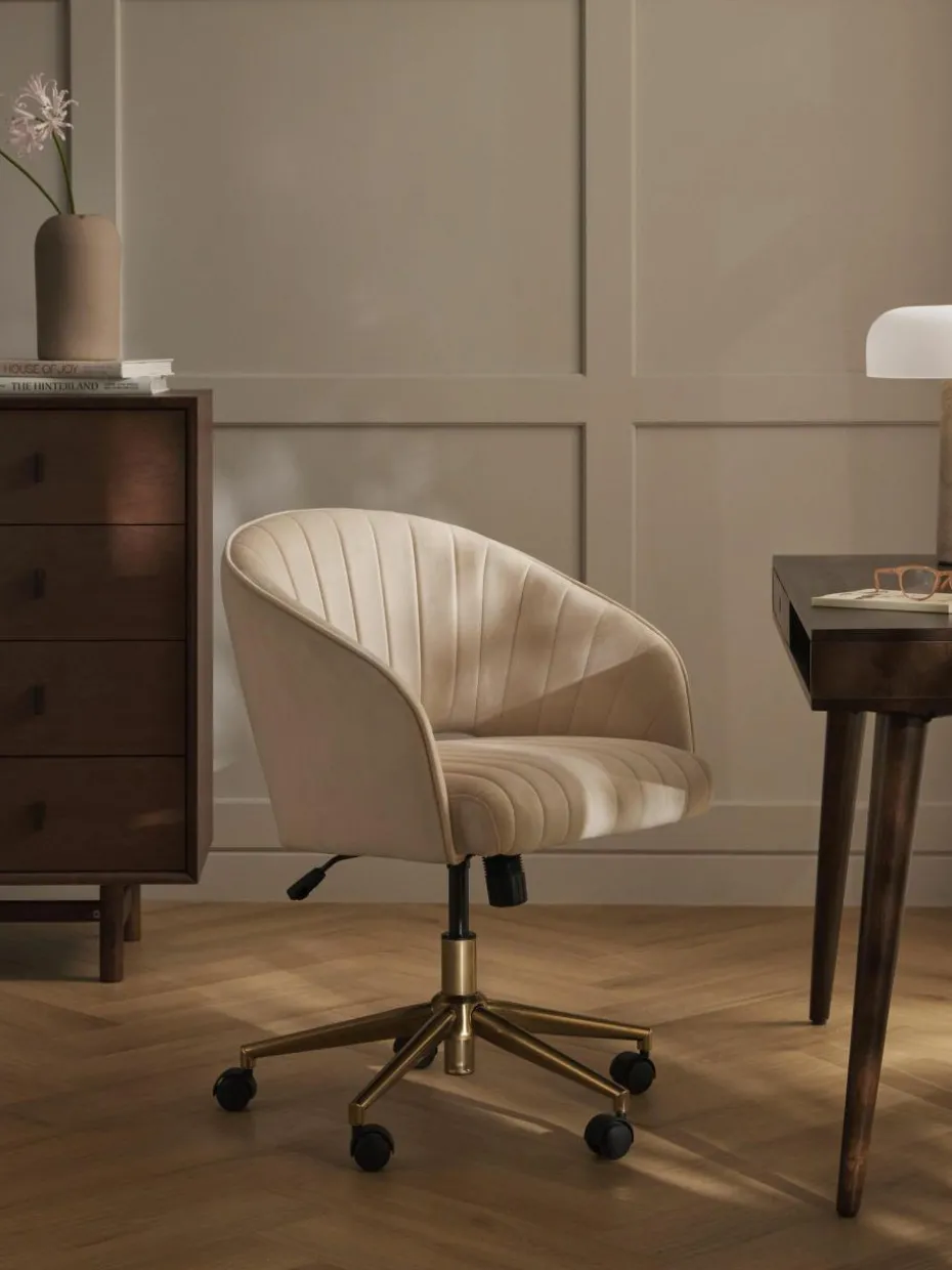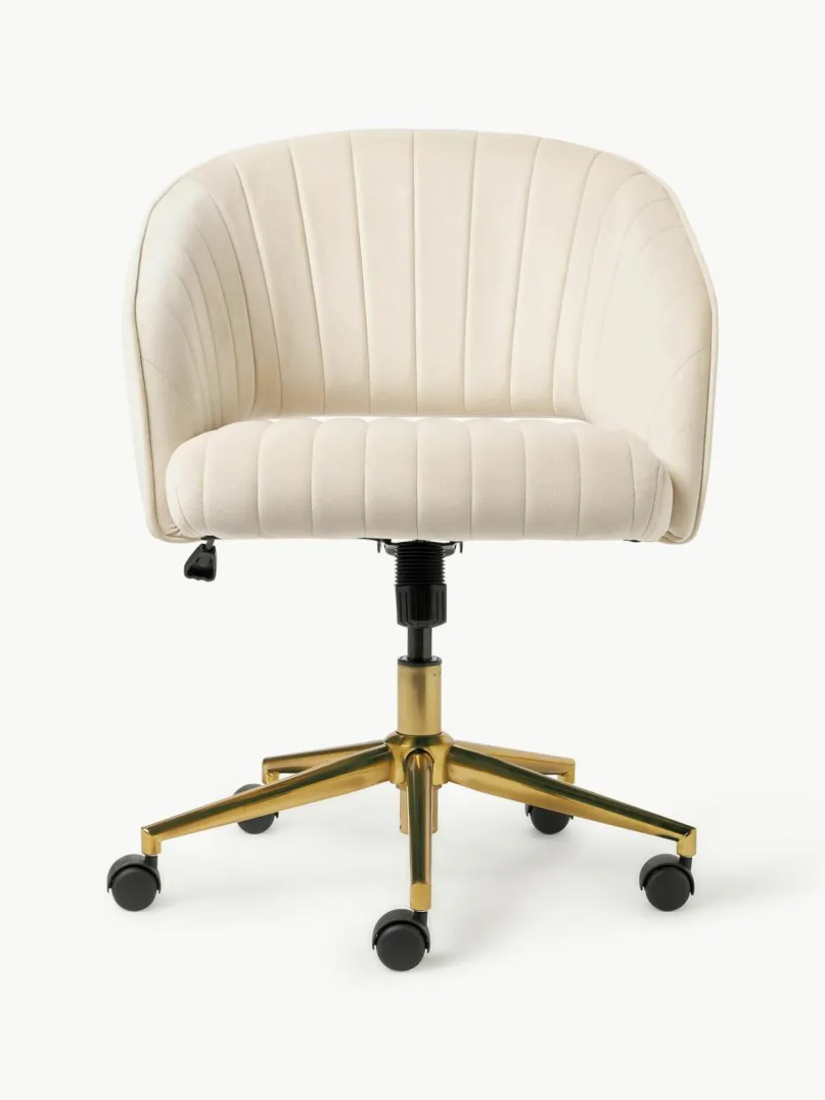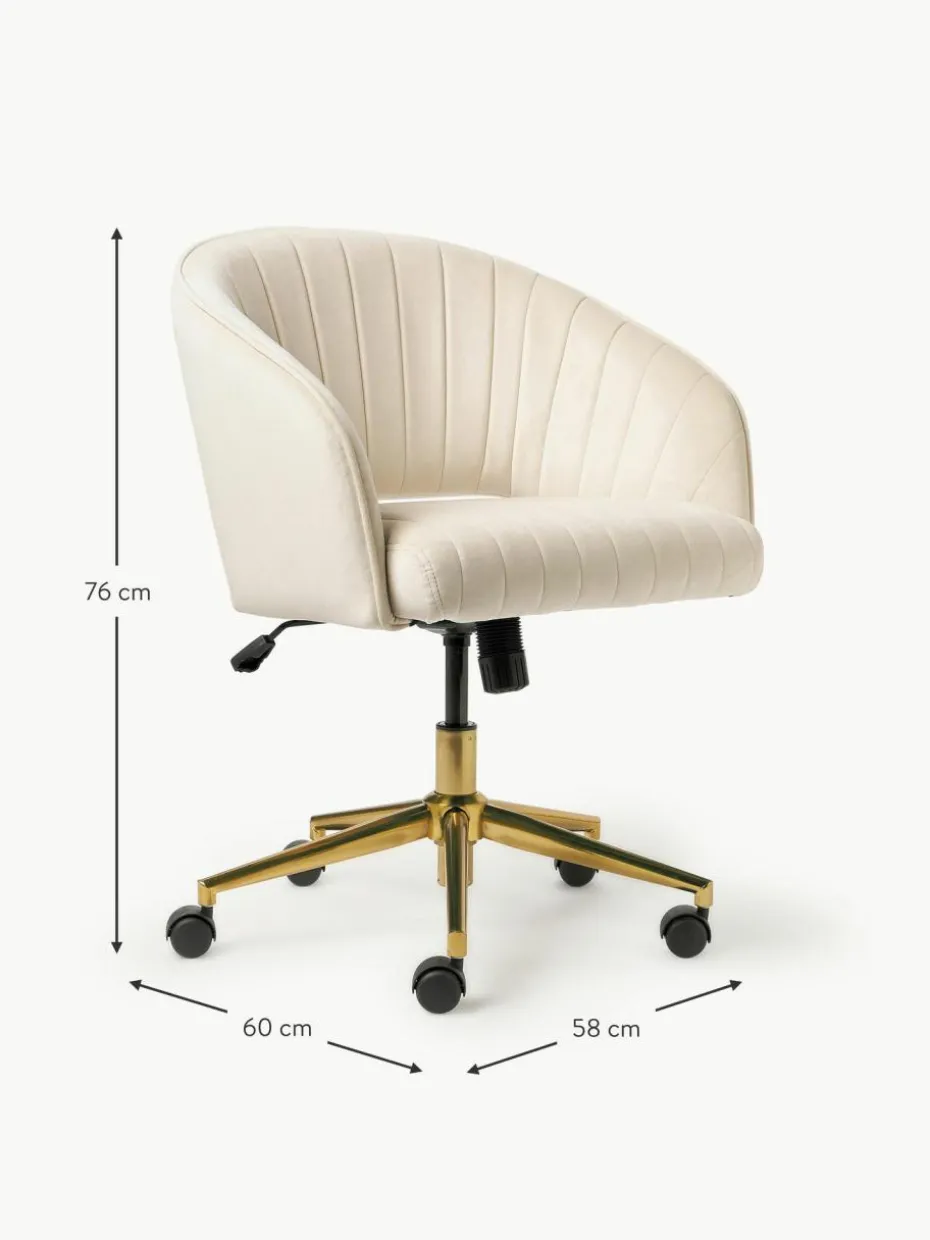 Samt-Schreibtischstuhl Laria mit Armlehne, höhenverstellbar