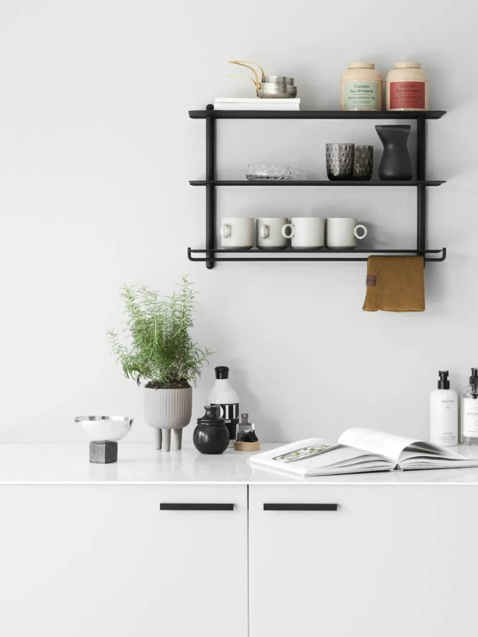 Die Elemente erweitern die Funktionalität des klassischen NIVO Regals und machen das Designobjekt zu einem praktischen Helfer im Alltag. Es sind einfache Lösungen mit dem leichten und eleganten Ausdruck, der das Markenzeichen der Marke ist. Einmal mehr hat Gejst alltägliche Gegenstände neu durchdacht und ihnen eine einzigartige Note verliehen, ohne dabei Kompromisse bei der Qualität oder dem nordischen Designansatz der Marke einzugehen. Die NIVO Schiene unterstreicht den grafischen und minimalistischen Ausdruck des Regals in einer Neuinterpretation, die Lösungen für die praktischen Herausforderungen des täglichen Lebens bietet und das NIVO Regal ideal für das moderne Zuhause macht. Die NIVO Schiene lässt sich leicht anbringen und gleitet mühelos über das NIVO Regal, um genau dort platziert zu werden, wo sie gebraucht wird – nah am Rand oder weiter innen, näher an der Wand.