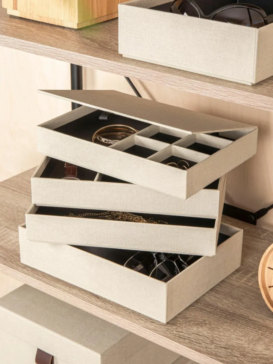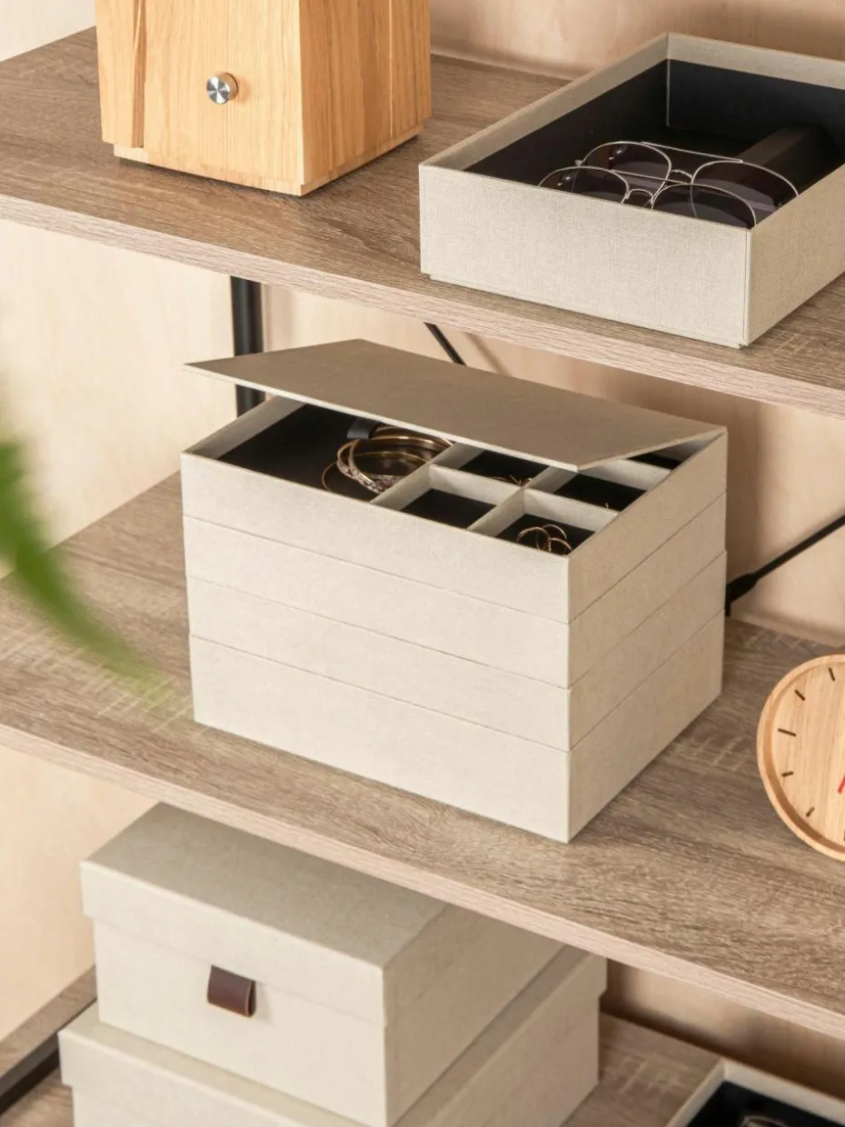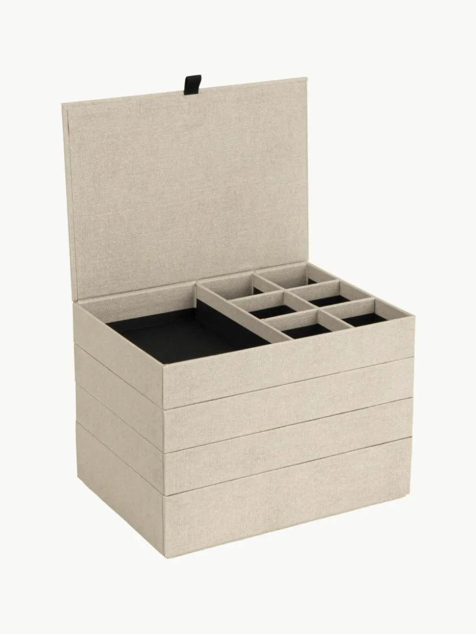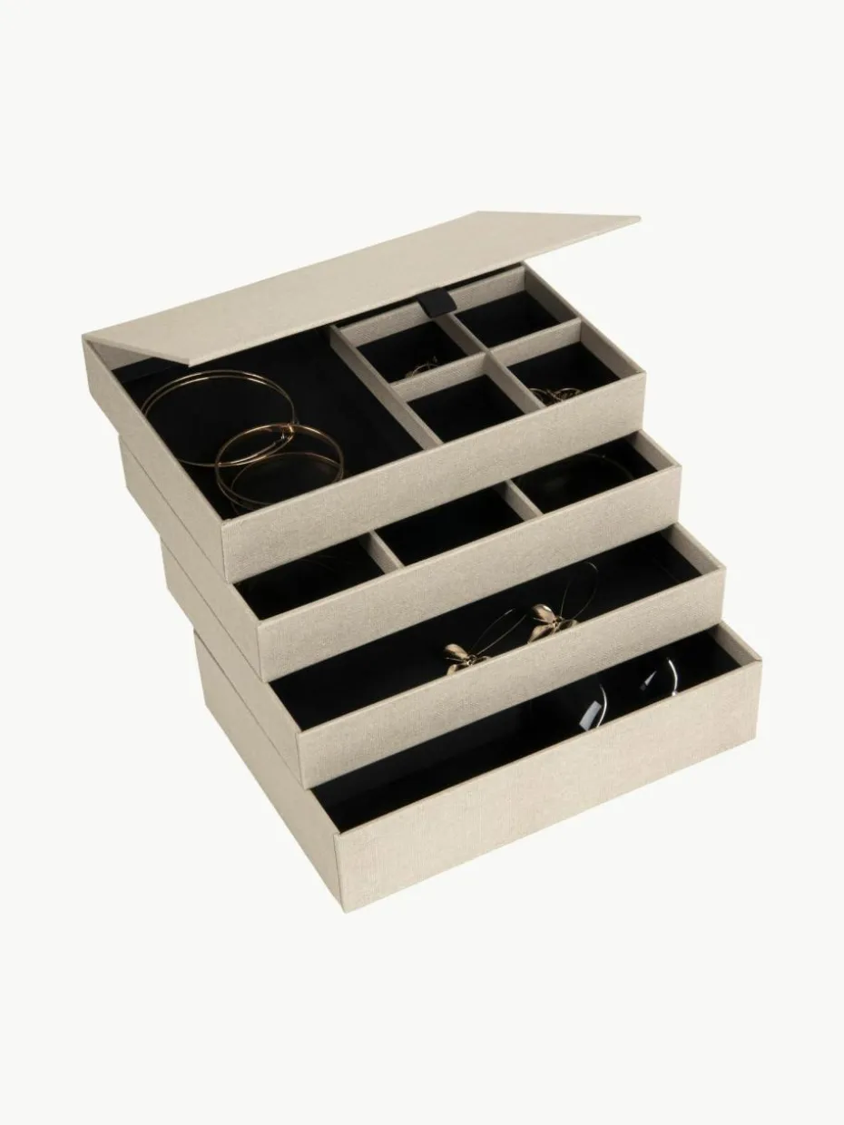 Luxuriöse Box mit viel Platz für Deinen Schmuck und andere wertvolle Gegenstände. Der leicht zu öffnende Deckel mit Magnetverschluss schützt den Inhalt vor Staub und Kratzern. In den separaten Fächern können Manschettenknöpfe, Halsketten, Armbänder, Ohrringe, Broschen, Sonnenbrillen und alle anderen Schmuckstücke und Gegenstände ordentlich gestapelt und organisiert aufbewahrt werden.