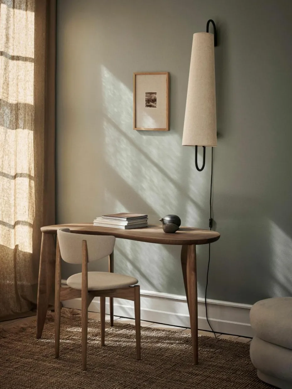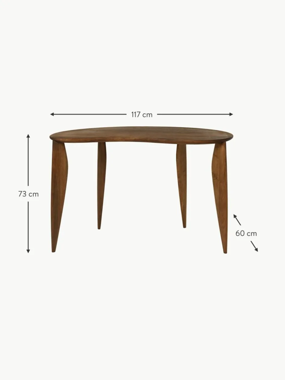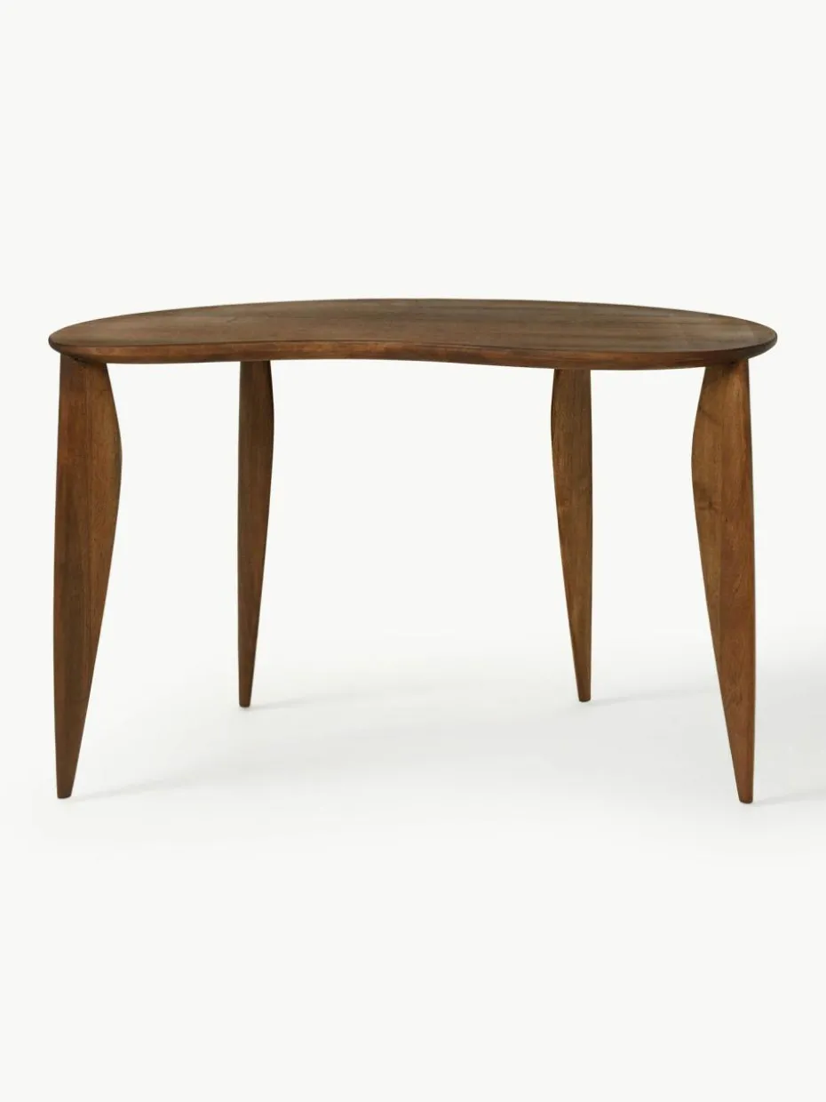 Die Tischbeine sind zu ausgedehnten, elliptischen Formen geschnitzt, die die elegante, feminine Gestalt des Schreibtisches unterstreichen und das Design harmonisieren. Der Feve Schreibtisch benötigt nur wenig Platz.