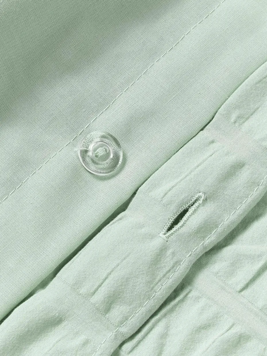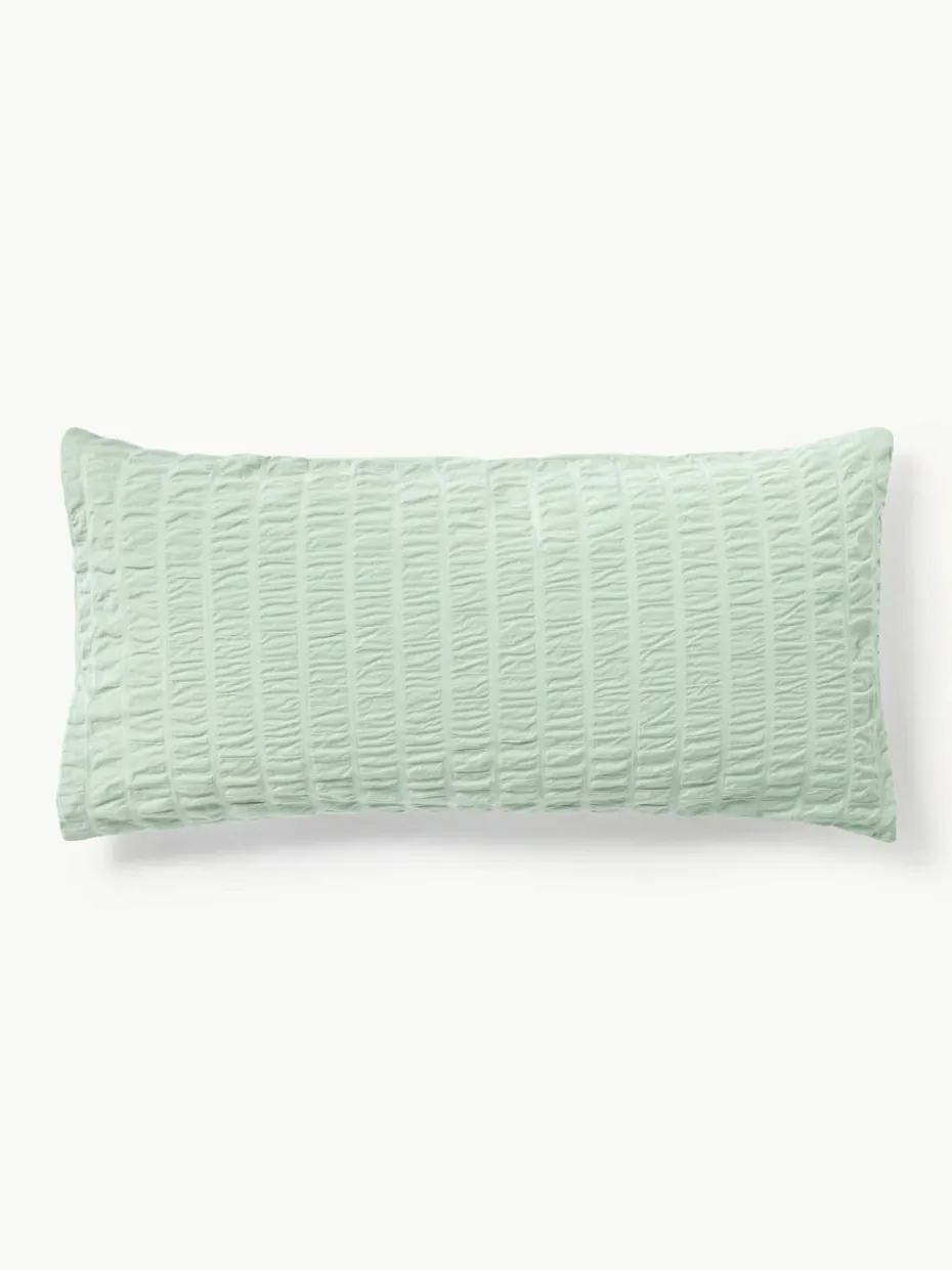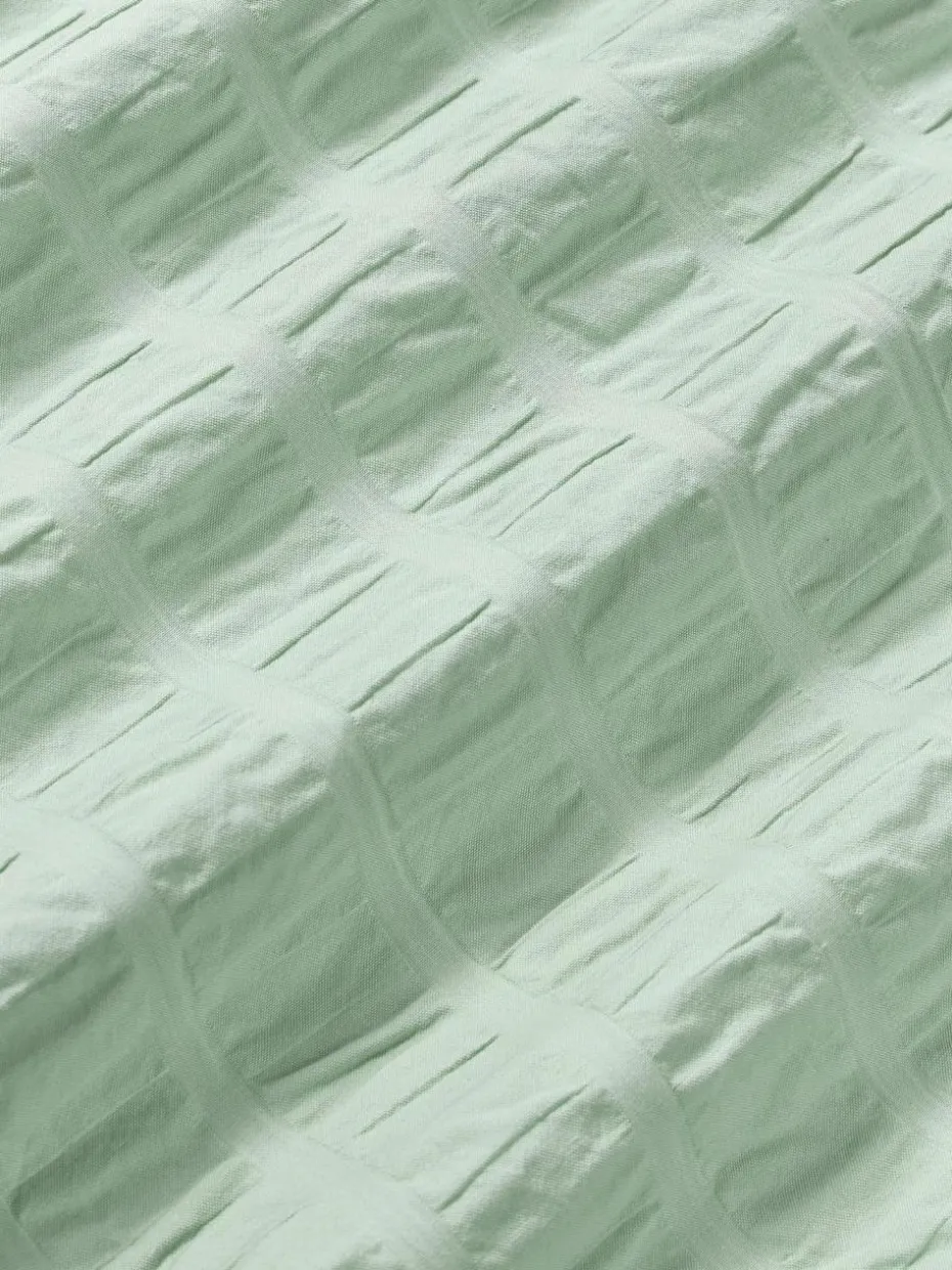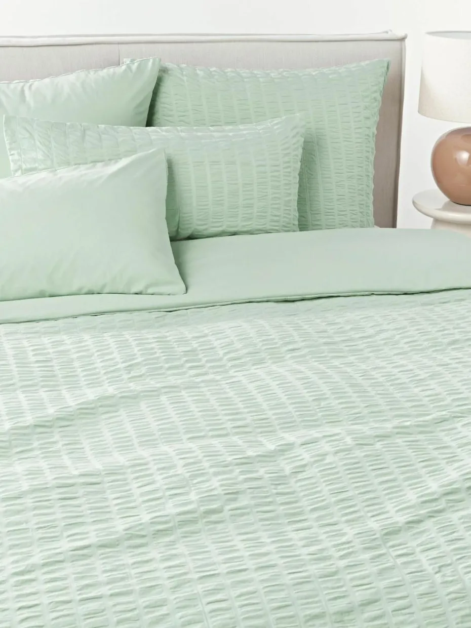 ESME besticht mit einer glatten Baumwolloberfläche auf der Rückseite und einer pflegeleichten Seersucker-Oberfläche auf der Vorderseite. Dieser Stoff hat eine wellenförmige Struktur und eine crepeartige Oberfläche, die für eine interessante Optik und ein besonders angenehmes Schlafgefühl sorgt. Seersucker ist nicht nur pflegeleicht, sondern dank seiner Struktur auch besonders knitterarm. Perfekt für alle, die es unkompliziert und stilvoll mögen!