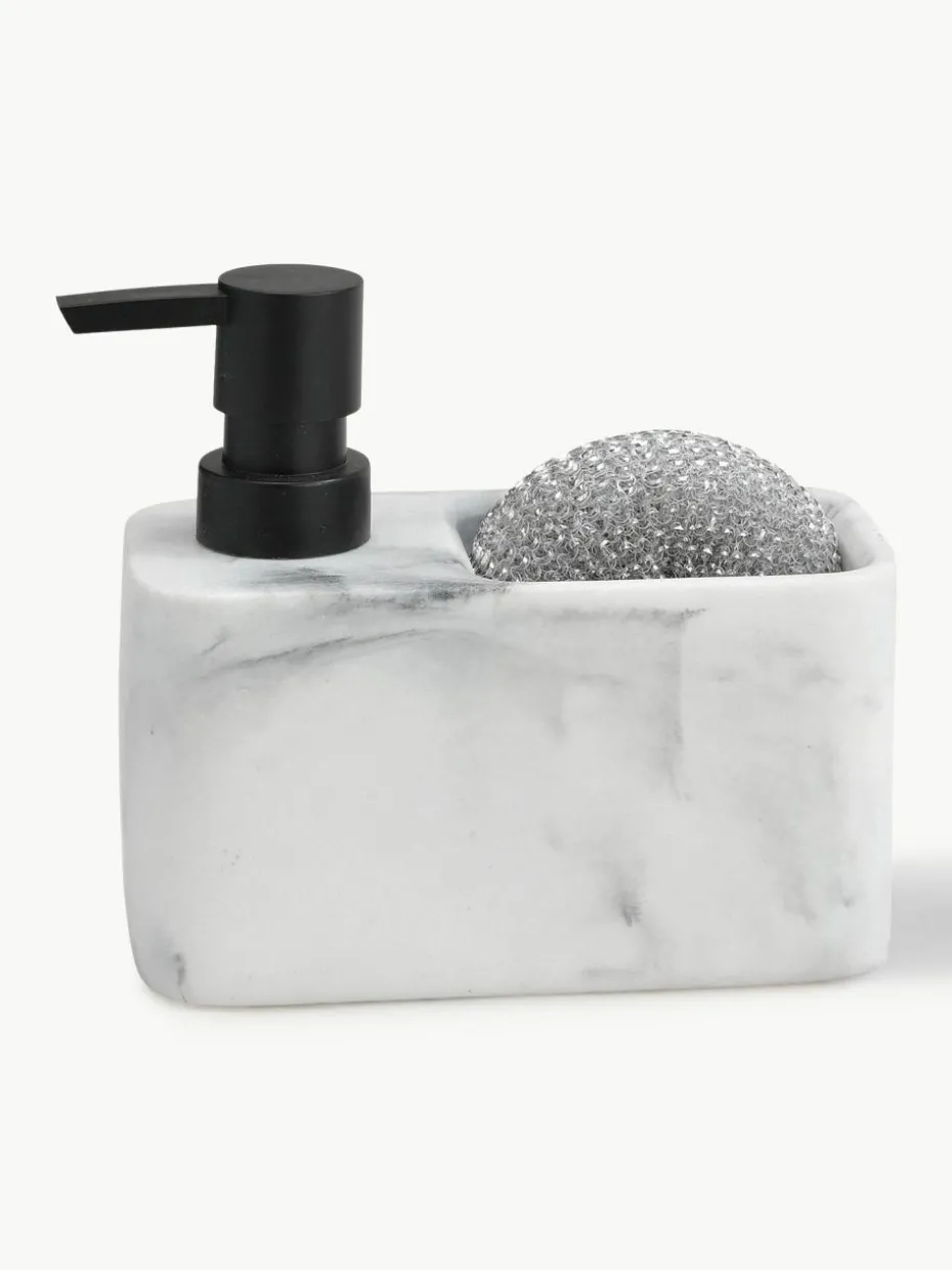 Seifenspender Galia in Marmor-Optik mit Schwamm, 2er-Set