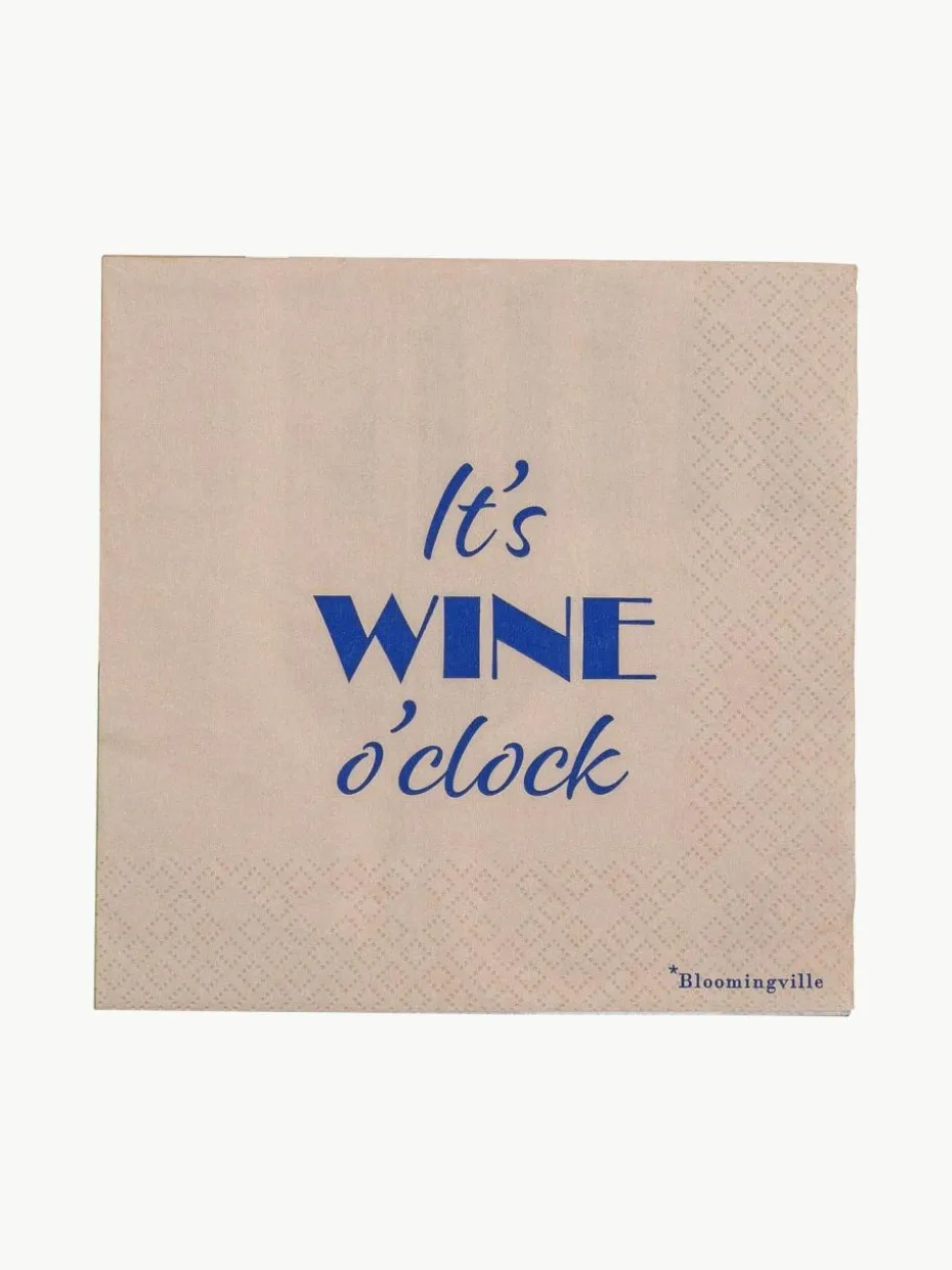 Die WINE Servietten von Bloomingville bestechen durch ein doppelseitiges Design. Auf der einen Seite befindet sich ein verspieltes, abstraktes Motiv in Pastellfarben, während die andere Seite mit einem Zitat versehen ist, das der Tischdekoration einen lässigen und fröhlichen Akzent verleiht.