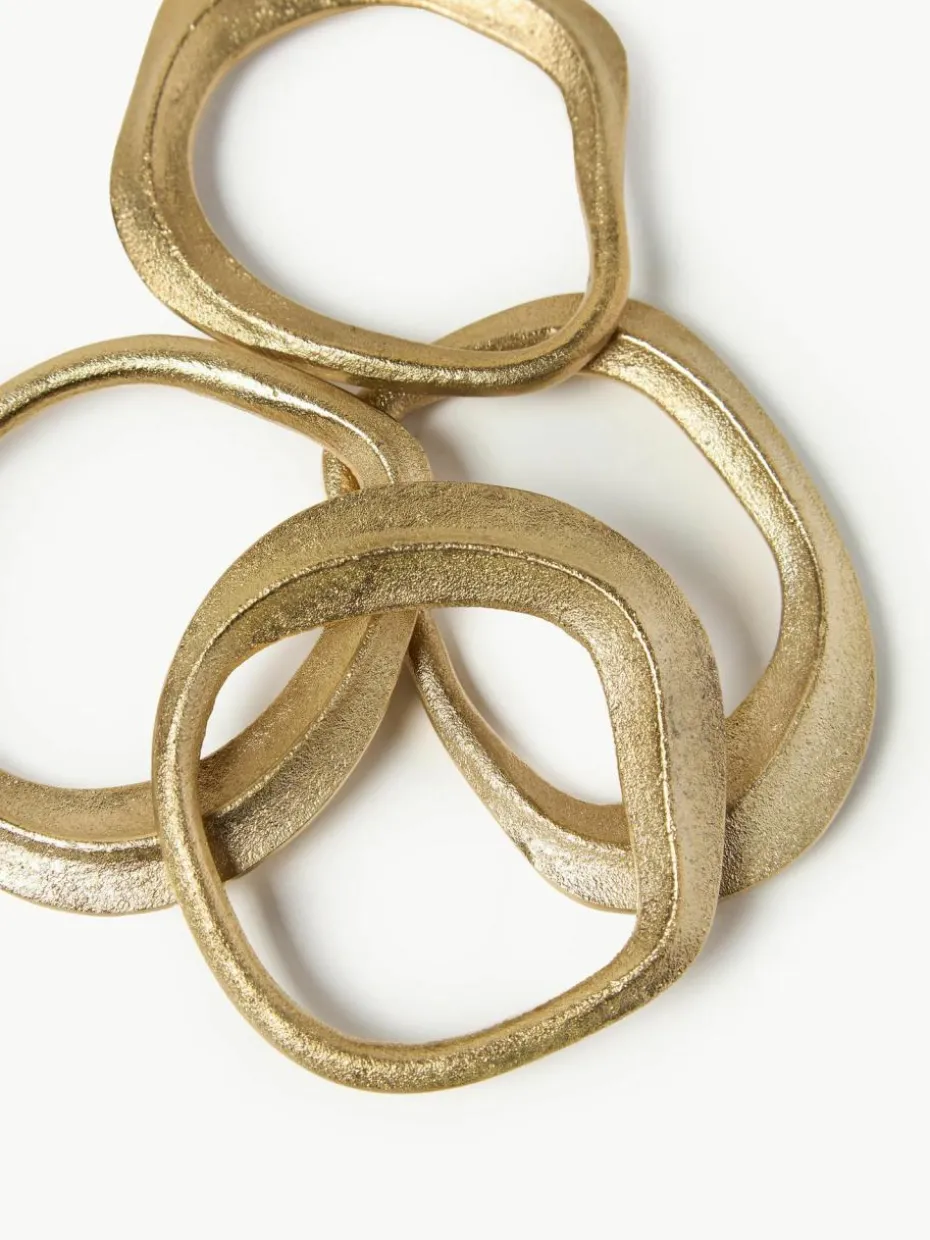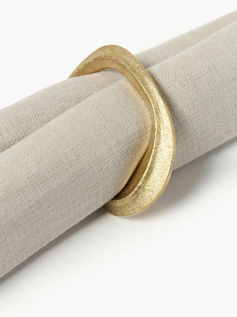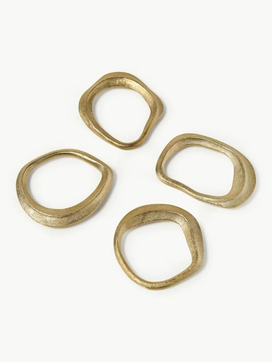 Dieses Set aus vier Serviettenringen in fließenden organischen Formen hilft Dir, Deinen Tisch mit schönen, von der Natur inspirierten Formen zu gestalten. Jedes Set besteht aus vier individuell geformten Ringen aus massivem Messing, die eine Serviette auf dezente und anmutige Weise präsentieren.