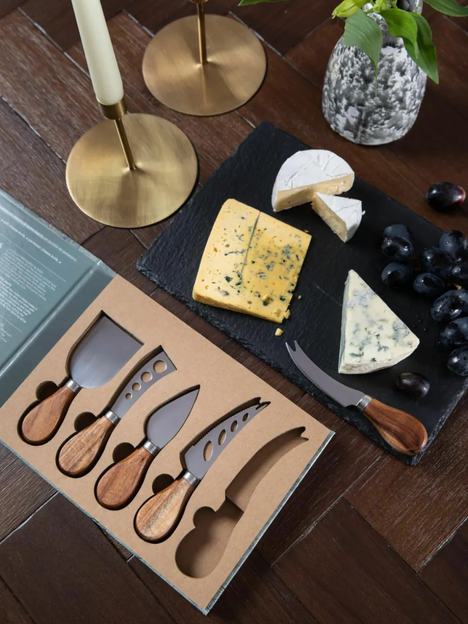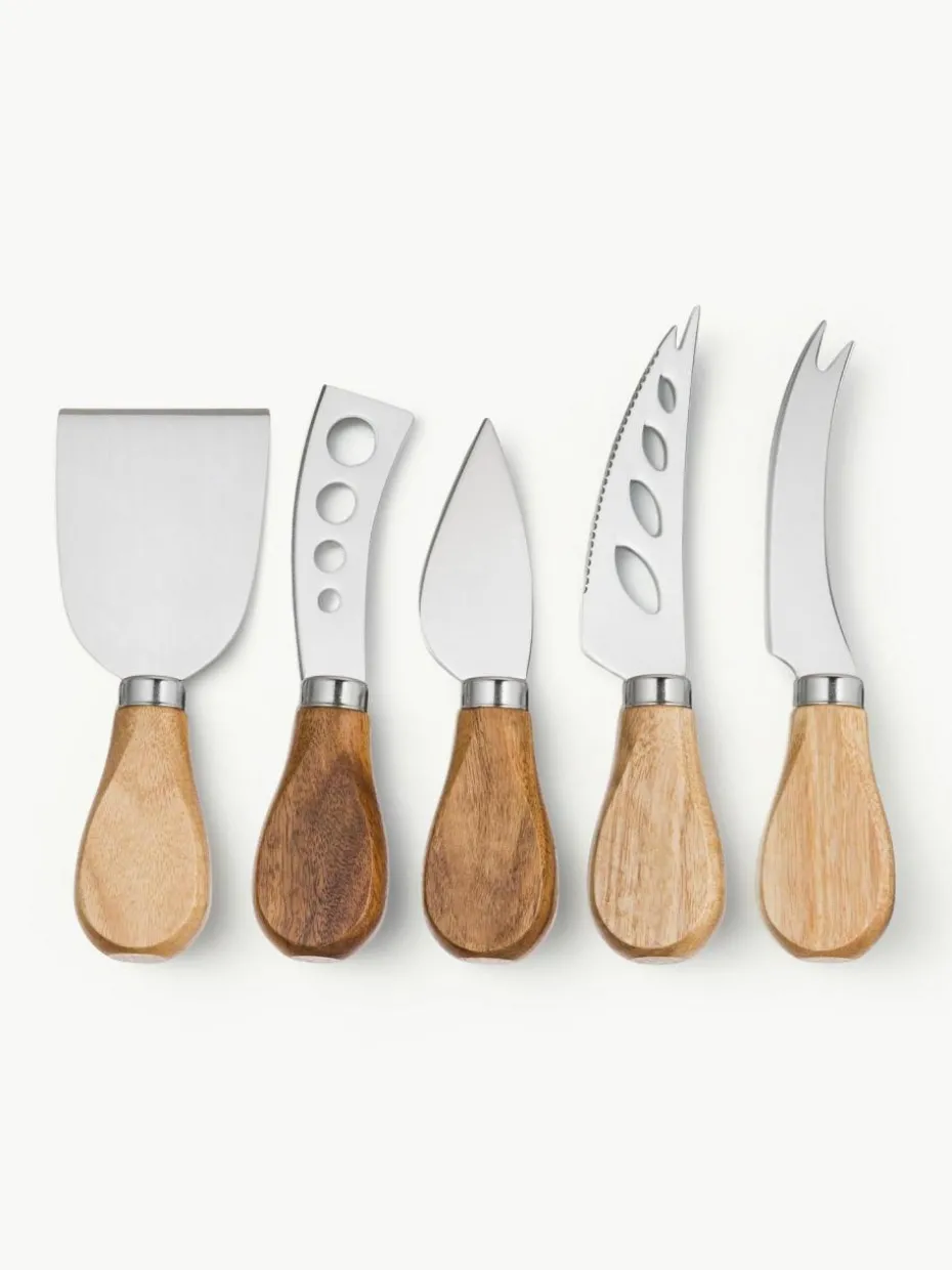 Silberne Käsemesser Frija mit Akazienholzgriff, 5er-Set