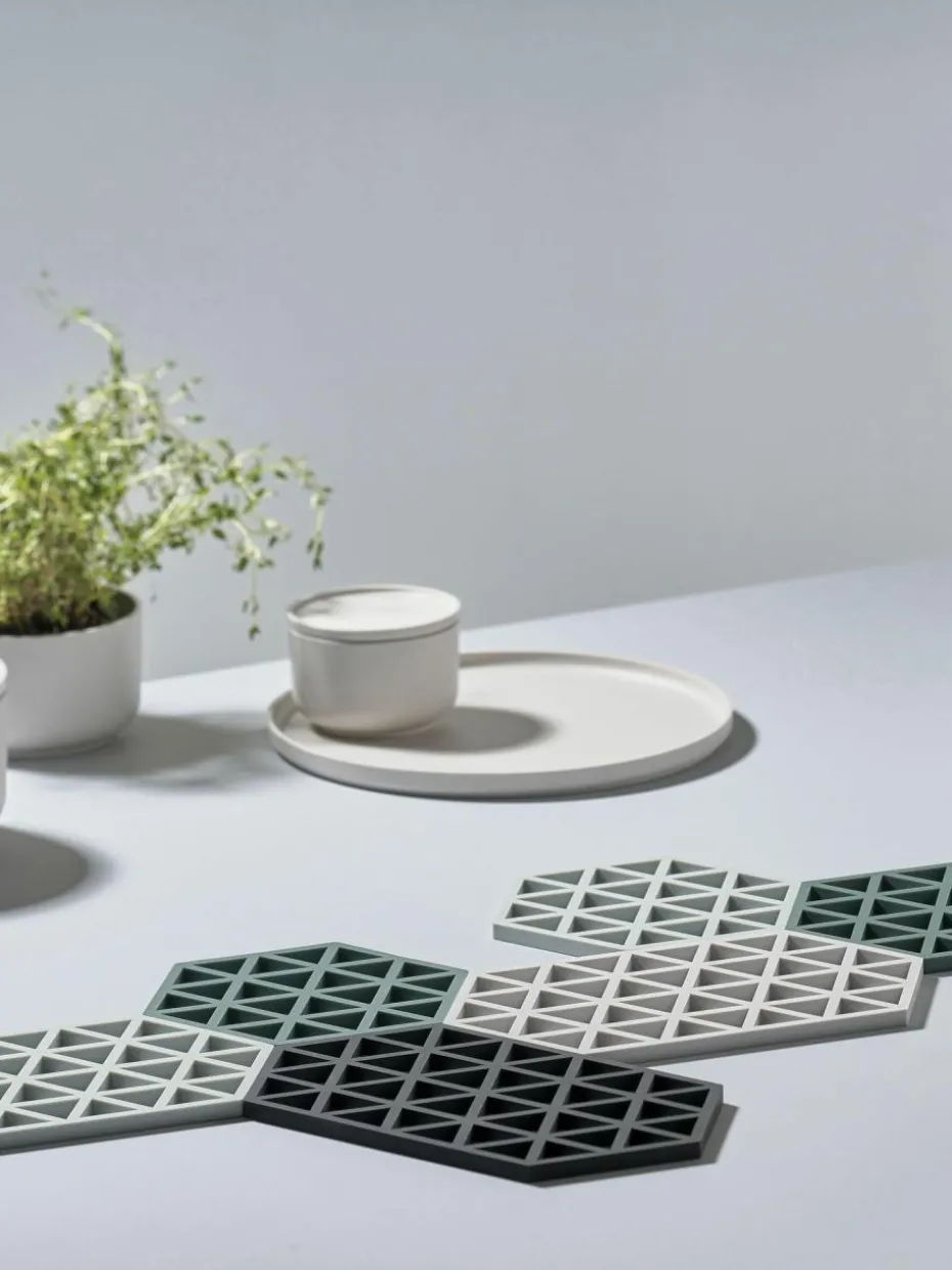 Die Serie wurde von dem Designertrio VE2 kreiert. Triangles ist in vielen aufregenden Farben erhältlich und lässt sich wunderbar mit den Untersetzer der Serie Hexagon kombinieren, die dieselben äußeren Abmessungen haben.“,“pdp_care_label“:“Spülmaschinengeeignet