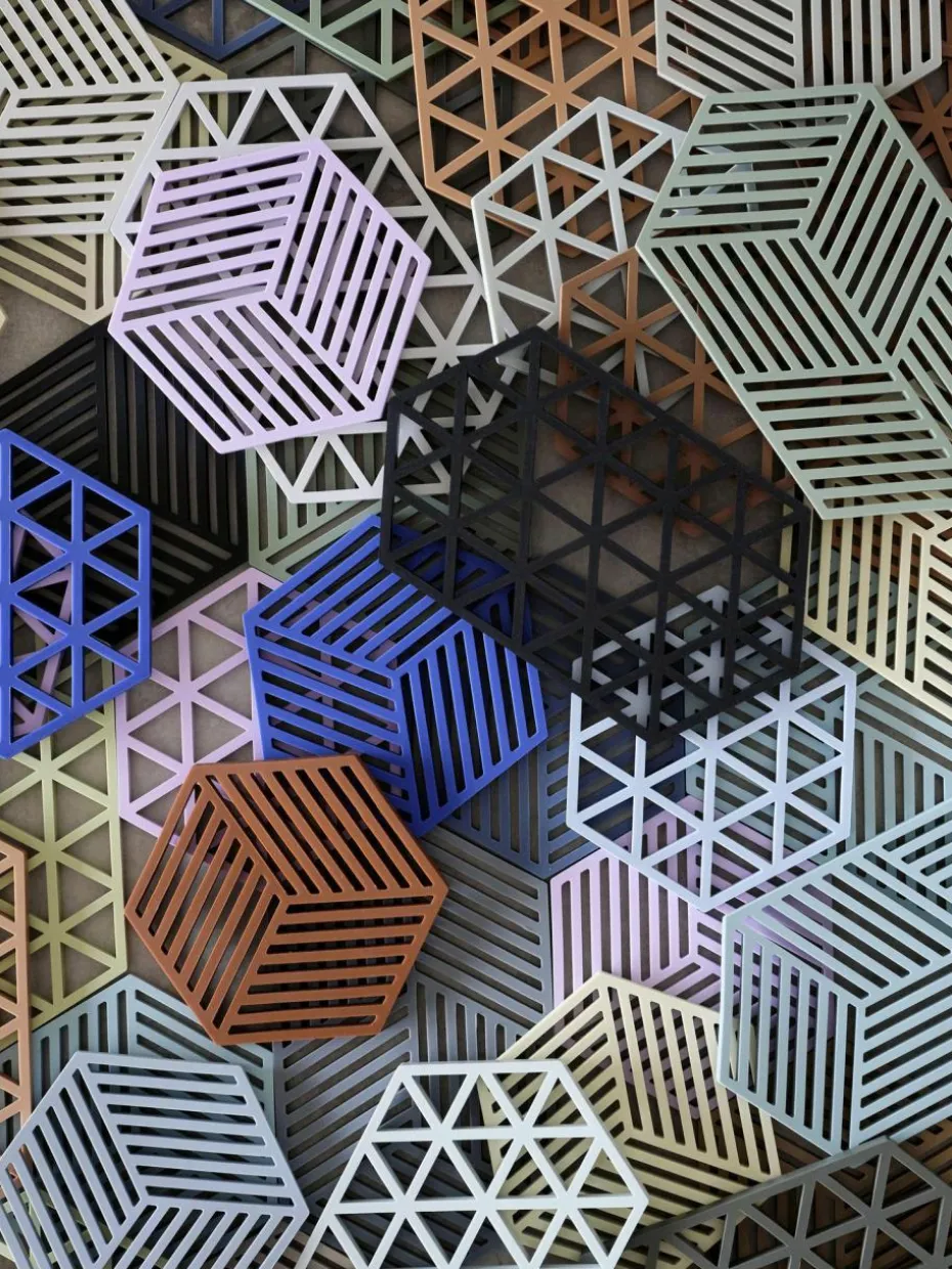 Die Serie wurde von dem Designertrio VE2 kreiert. Hexagon ist in vielen aufregenden Farben erhältlich und lässt sich wunderbar mit den Untersetzern der Serie Triangles kombinieren, die die gleichen Außenmaße haben.“,“pdp_care_label“:“Spülmaschinengeeignet