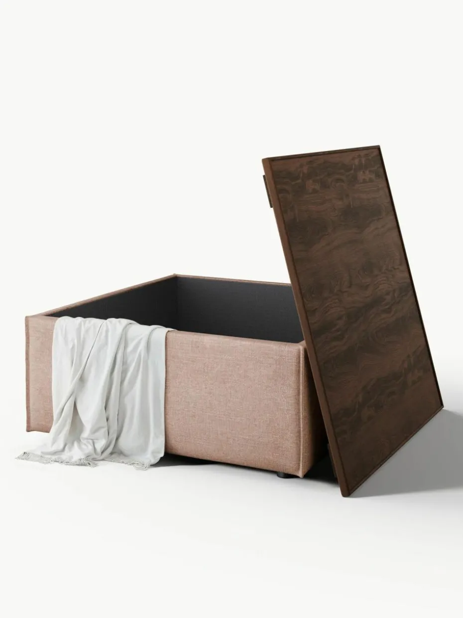 Entdecke den neuen Hocker der LENNON Familie – die perfekte Ergänzung zu Deinem LENNON Sofa, aber auch eigenständig ein echter Hingucker! Hier sind praktische Funktionalität und stilvolles Design miteinander vereint: Unter dem eleganten Holztablett verbirgt sich großzügiger Stauraum, in dem Du jede Menge Gegenstände clever verstauen kannst.