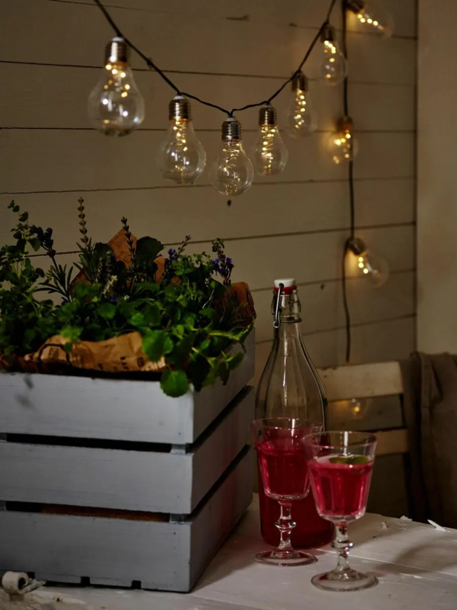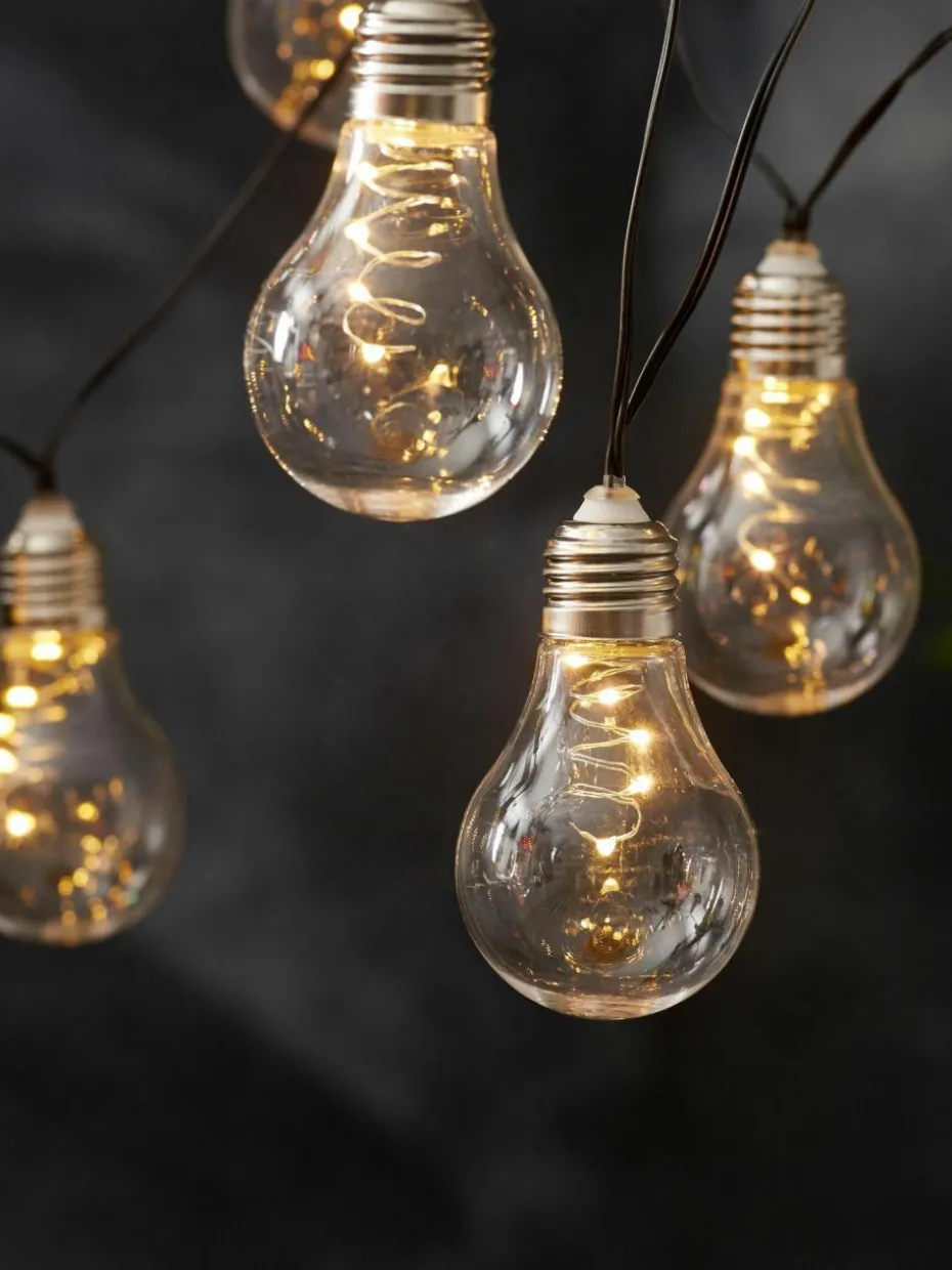 Solar Lichterkette mit 10 Lampions im Edison-Glühbirnen Design, leuchtet warmweiß.