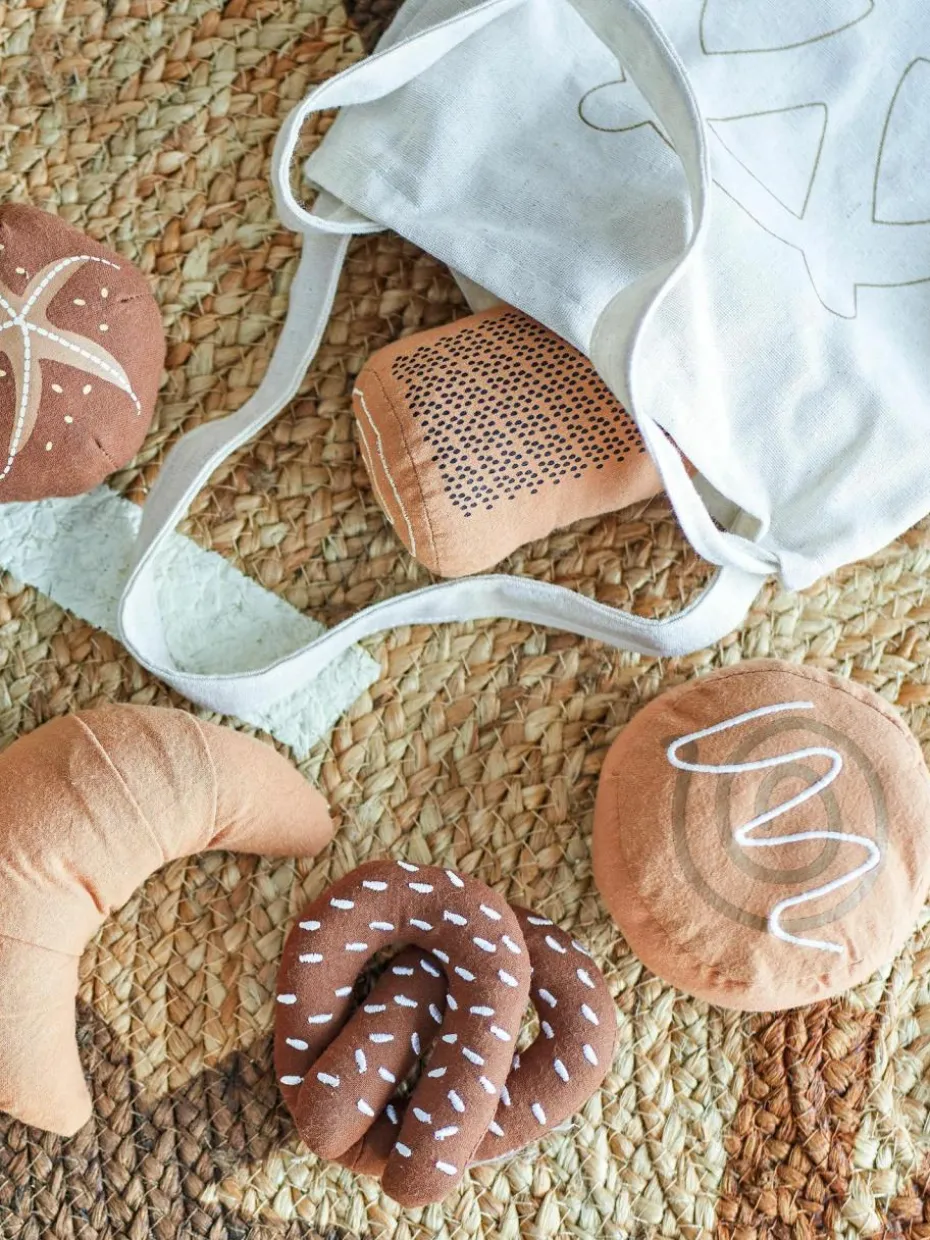 Das SNORRE Spielset von Bloomingville MINI ist das perfekte Set für kleine Bäcker. Das Set enthält eine Stofftasche, die mit weichem Spielzeugbrot gefüllt ist. Jedes Stück Brot ist aus weichem Stoff und hat realistische Details, die die Spielzeit extra Spaß machen.