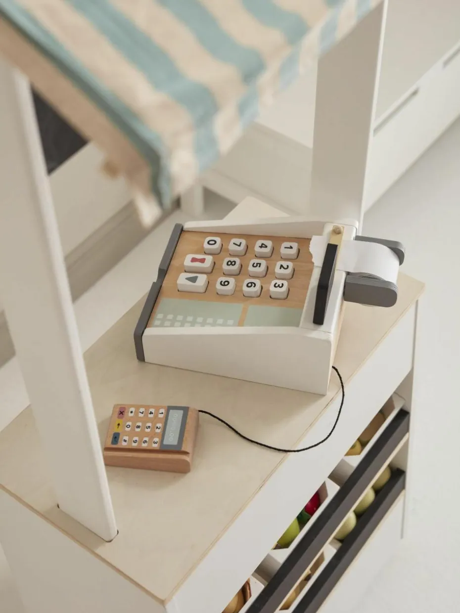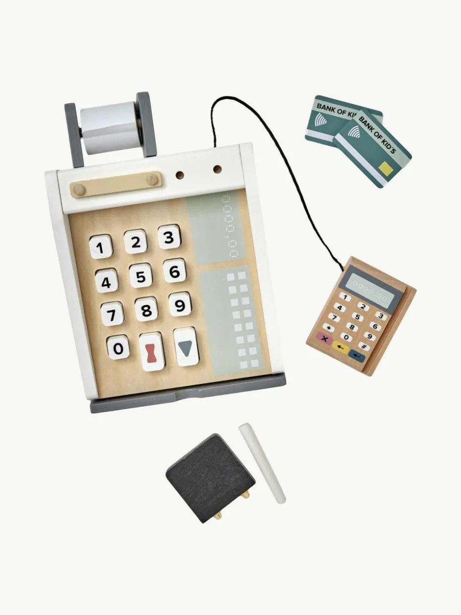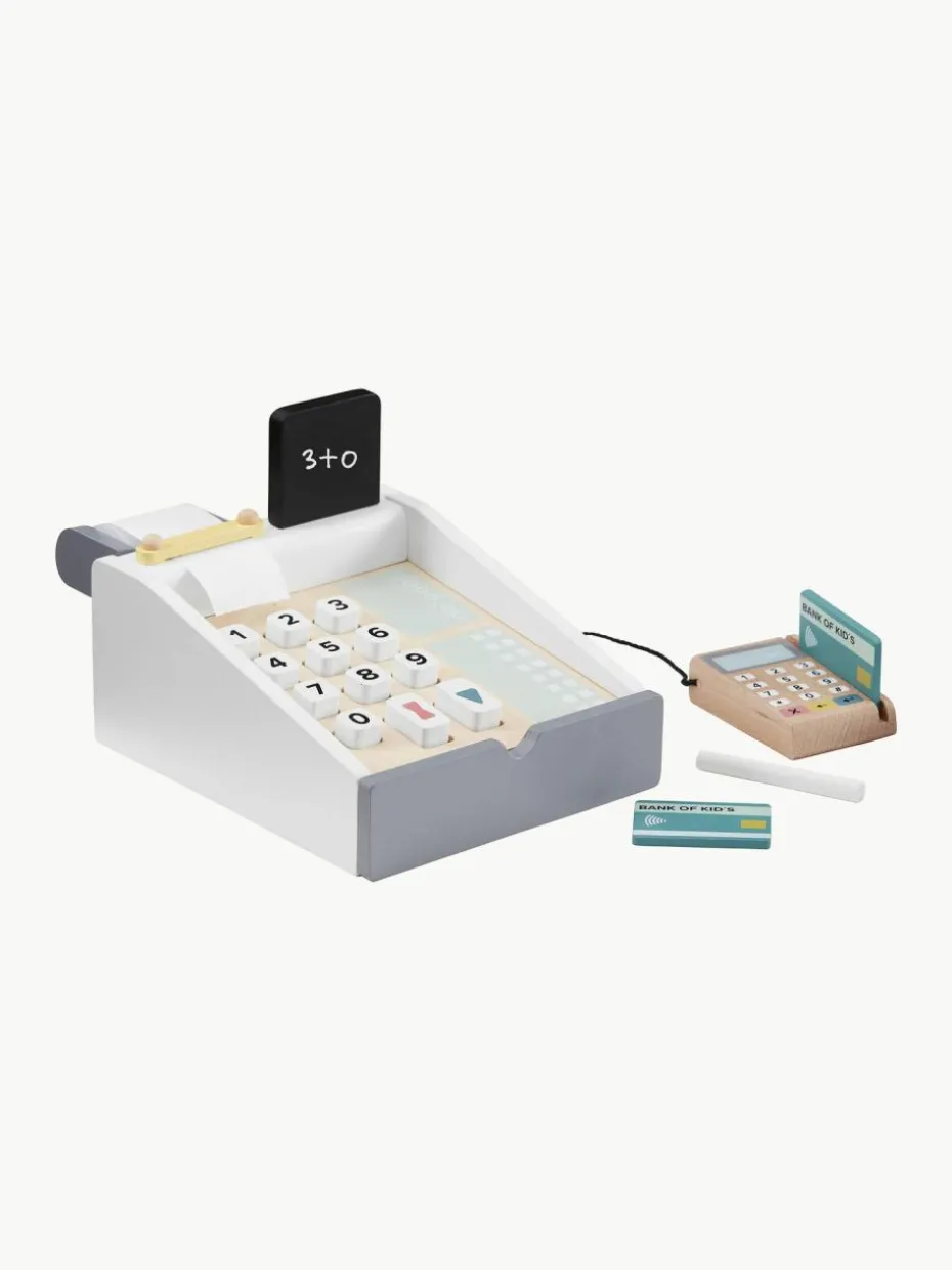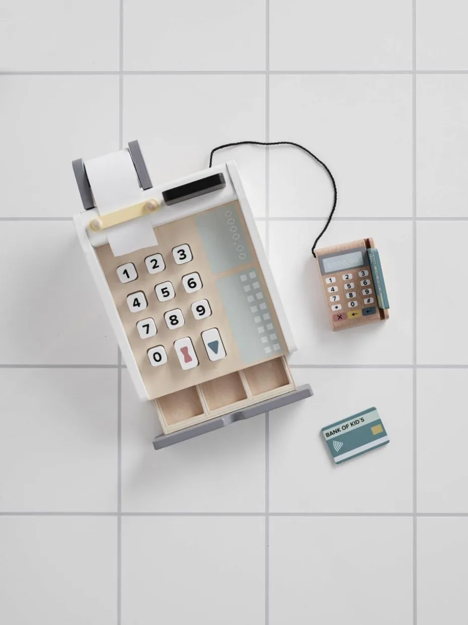 Perfekt für den kleinen Kiosk oder Ladenbereich. Die Registrierkasse verfügt über Tasten zum Drücken, eine Tafel zum Aufschreiben der Preise sowie über weiße Kreide und Fächer für Scheine und Münzen. Zudem ist ein Kartenleser mit zwei Karten enthalten.