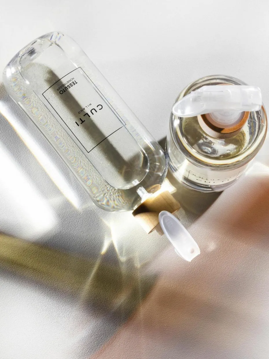 Zylindrische Flasche aus transparentem PET mit Siebdruck und Trigger. Eleganz und Minimalismus vereinen sich in der exklusiven WELCOME Kollektion von Culti Milano. Genieße die ikonischen Düfte von Culti sofort mit diesem praktischen Spray-Diffusor. TESSUTO: Die Leichtigkeit feiner Seidenstoffe wahrnehmen fühlt sich an, wie mit offenen Händen durch ein Baumwollfeld zu gehen. Fühle Dich immer wie zu Hause.