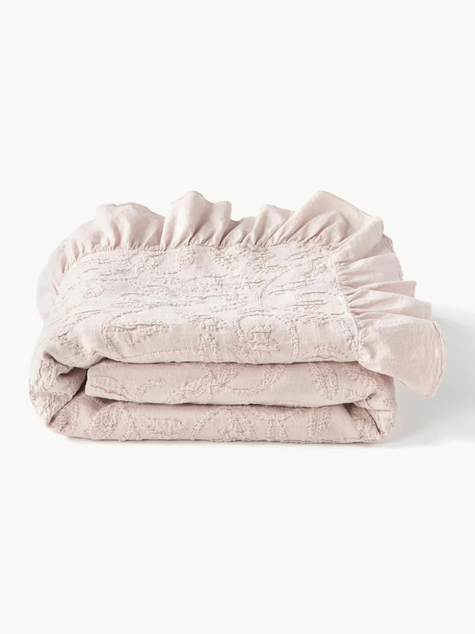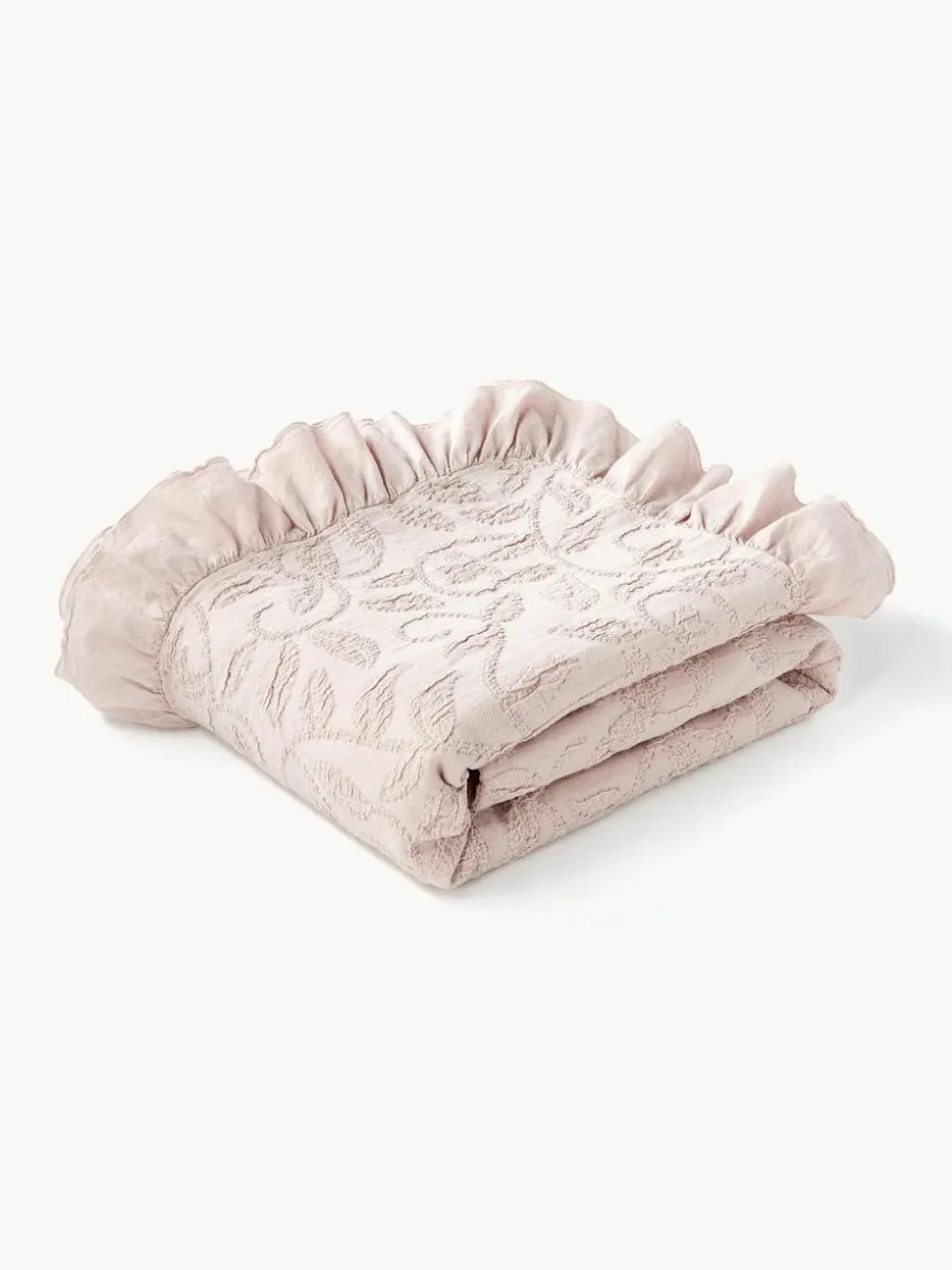 Strukturierte Baumwoll-Decke Clara mit Rüschen und floralem Muster