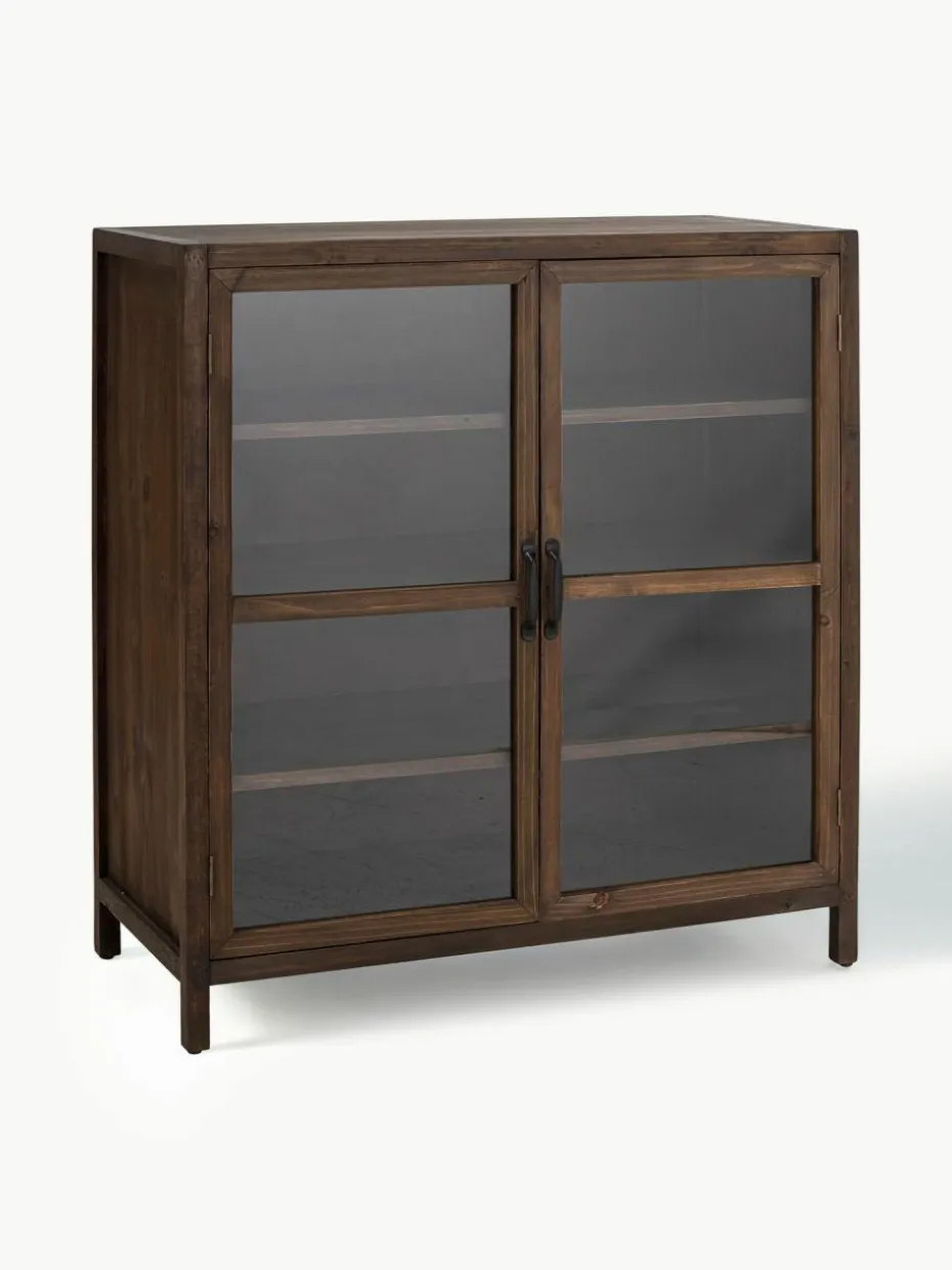 Die Vitrine Marl wird mit seiner warmen und dunklen Optik zum Mittelpunkt in jedem Raum. Der aus Tannenholz gefertigte Schrank ist in einem entspannten Look mit Vintageoptik gestaltet. Die drei Ablagen sorgen für optimale Aufbewahrung von Geschirr, Büchern, Vasen und anderen Lieblingsdingen.“,“pdp_care_label“:“Das Produkt wird platzsparend flach verpackt geliefert und benötigt nach dem Auspacken als Montageaufwand den Aufbau des kompletten Produkts.“,“pdp_packing_dimensions“:“Paket: B 50 cm, L 100 cm, H 106 cm