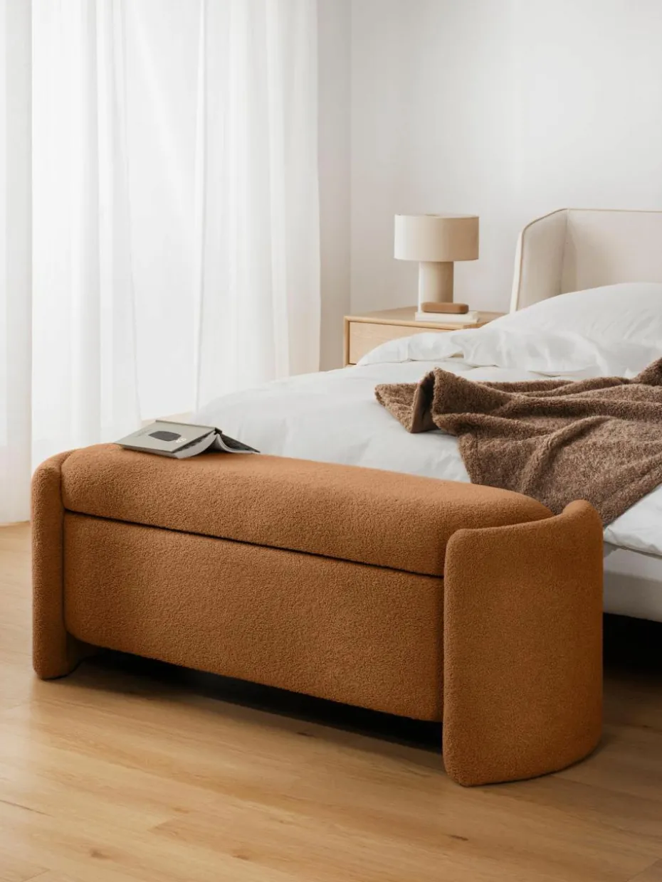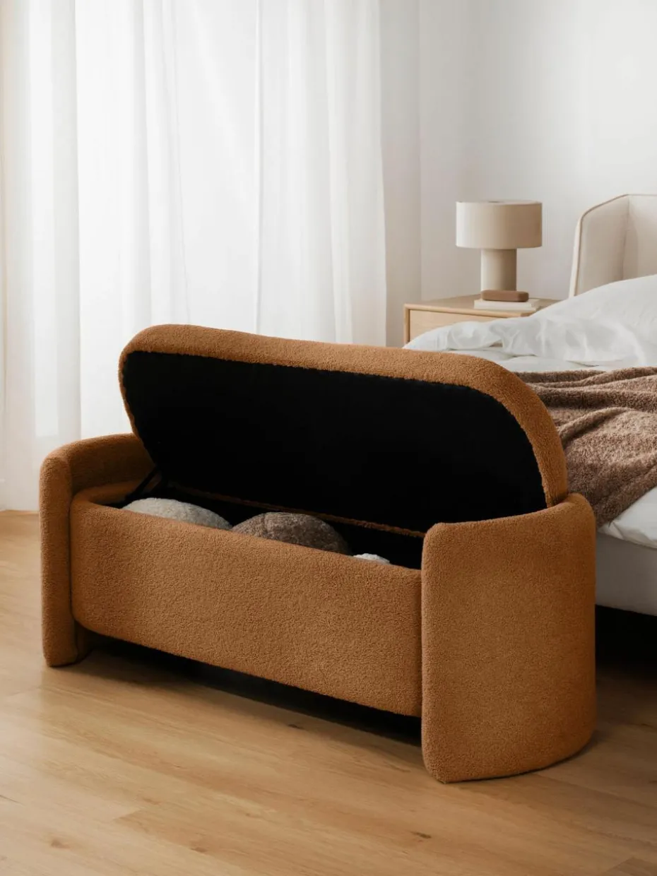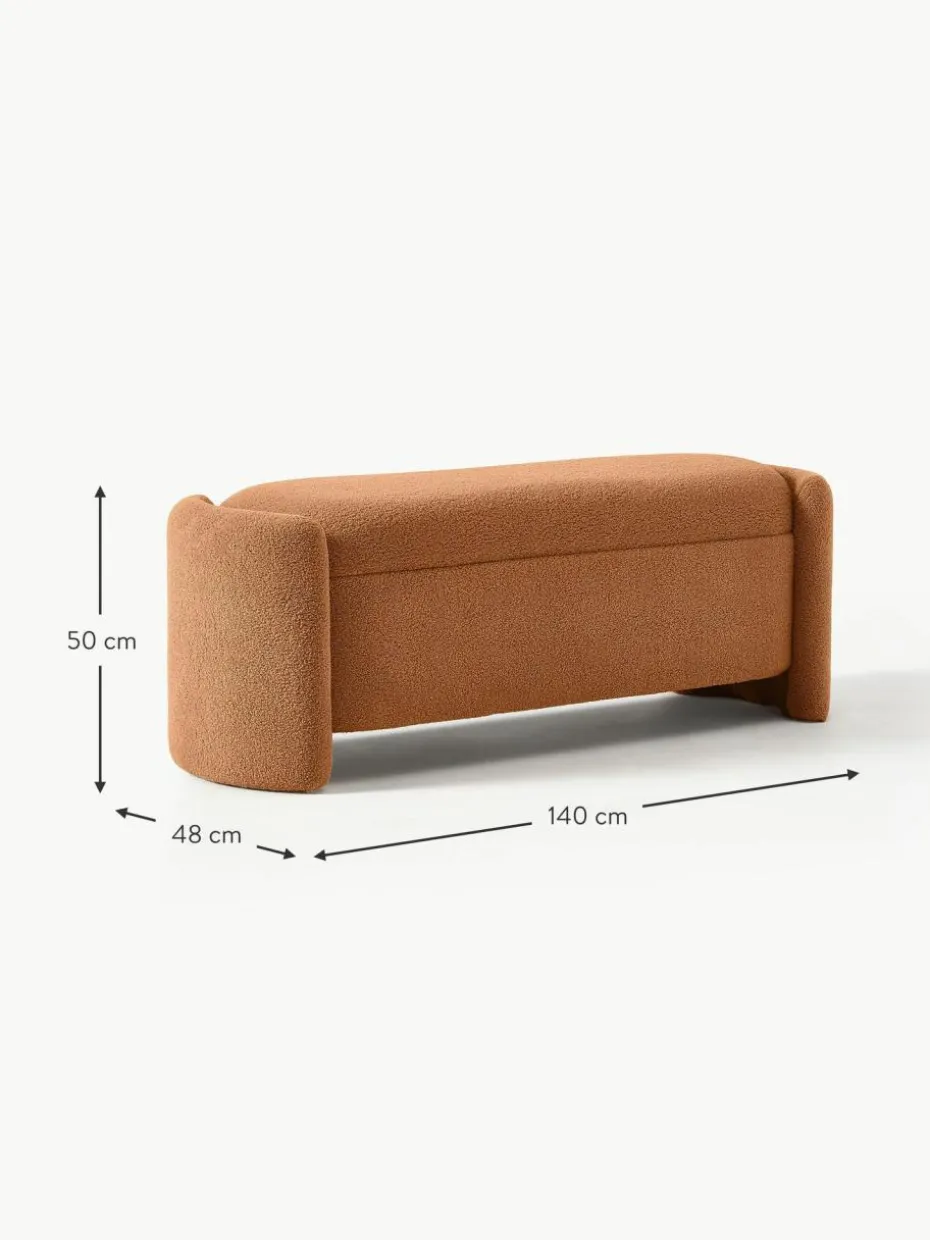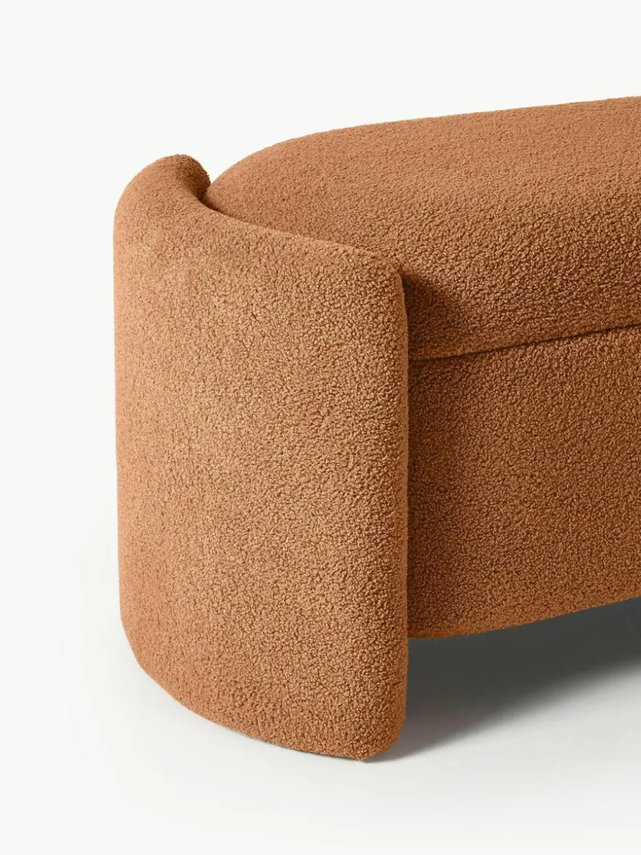 Die Polsterbank BENJI bietet nicht nur bequeme Sitzgelegenheit, sondern auch praktischen Stauraum. Ideal zum Verstauen von Decken, Kissen oder anderen persönlichen Gegenständen. Perfekt platziert am Fußende eines Bettes, im Flur oder im Wohnzimmer – BENJI ist ein vielseitiger Allrounder, der nicht nur optisch, sondern auch durch seine Funktion überzeugt. Die weiche, strukturierte Oberfläche aus hochwertigem Bouclé-Stoff verleiht jedem Raum eine gemütliche Atmosphäre. Die geschwungenen Seitenwände und der minimalistische Look fügen sich nahtlos in verschiedenste Einrichtungsstile ein, ob modern, skandinavisch oder klassisch.“,“pdp_care_label“:“Das Produkt wird fertig montiert geliefert und kann nach dem Auspacken sofort verwendet werden.